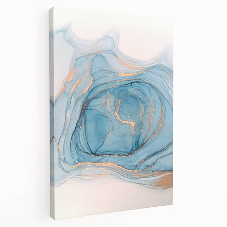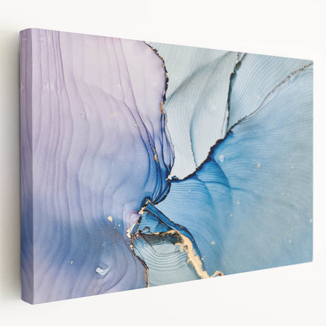 • Abstract landscape stretched canvas artwork showcasing vibrant hues of blue and green, set in a sleek side view to highlight its modern design and texture. Perfect for contemporary home decor enthusiasts.