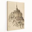 This exquisite vintage architectural wall art features a stunning illustration of Mont Saint-Michel, one of France's most iconic landmarks. The detailed drawing showcases the majestic abbey perched atop a rocky island, blending Gothic and Romanesque architecture. This historic building print captures the beauty and intricate design of Mont Saint-Michel, making it an exceptional piece for lovers of historic architecture and vintage building illustrations.