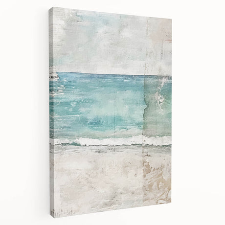 • Abstract minimalist wall art on stretched canvas, showcasing soft pastel colors and geometric shapes, ideal for modern home decor or office spaces.