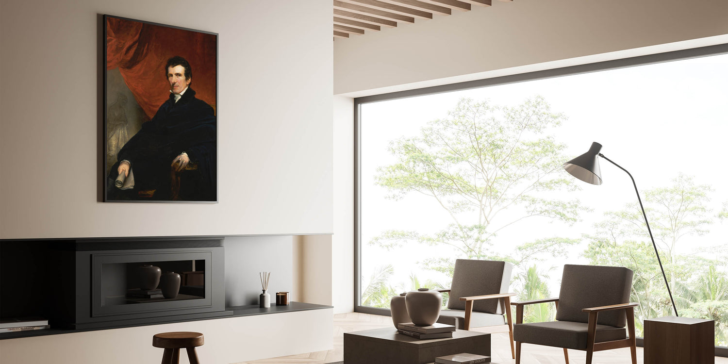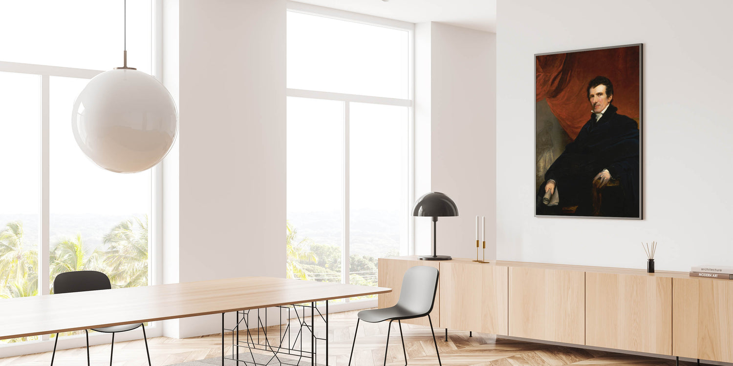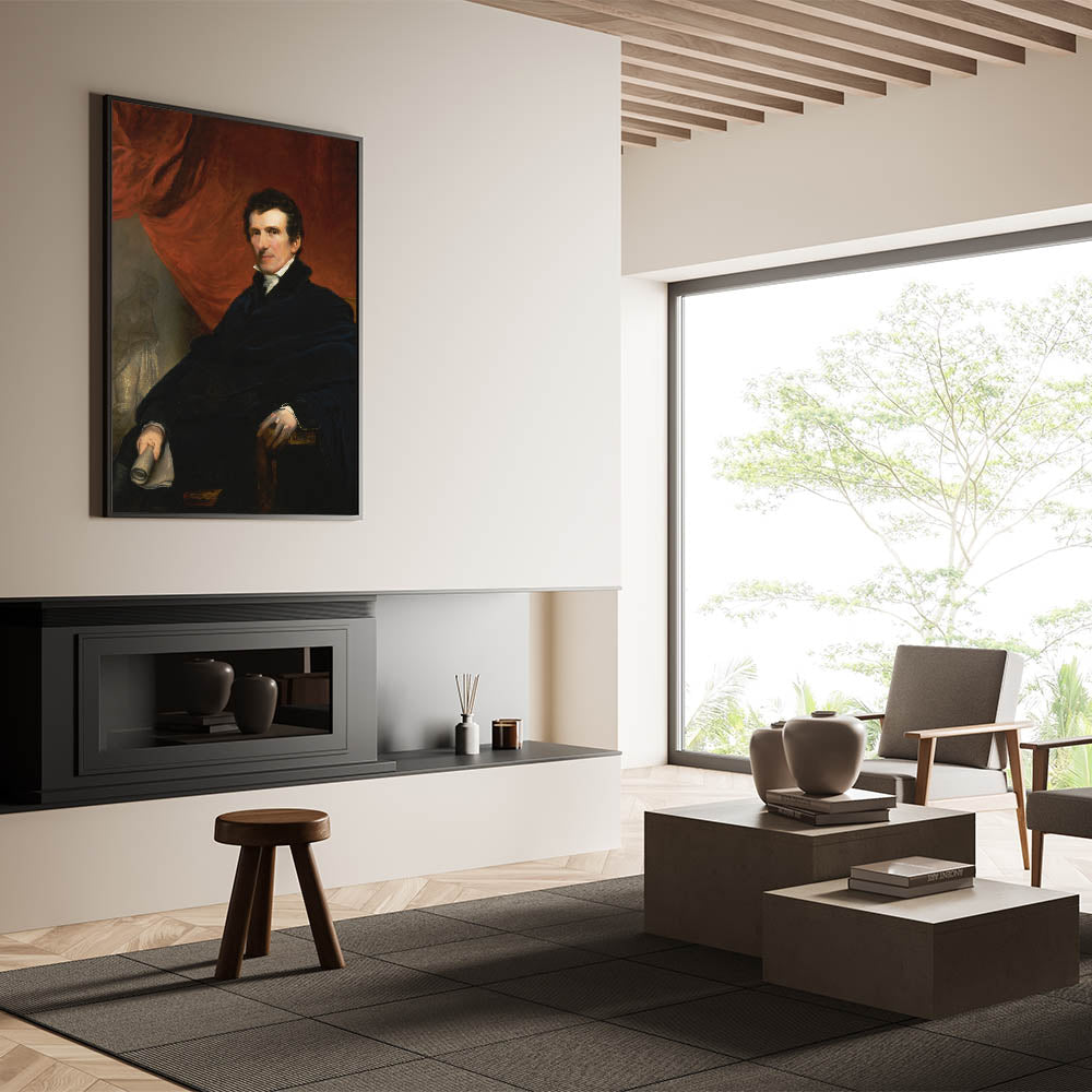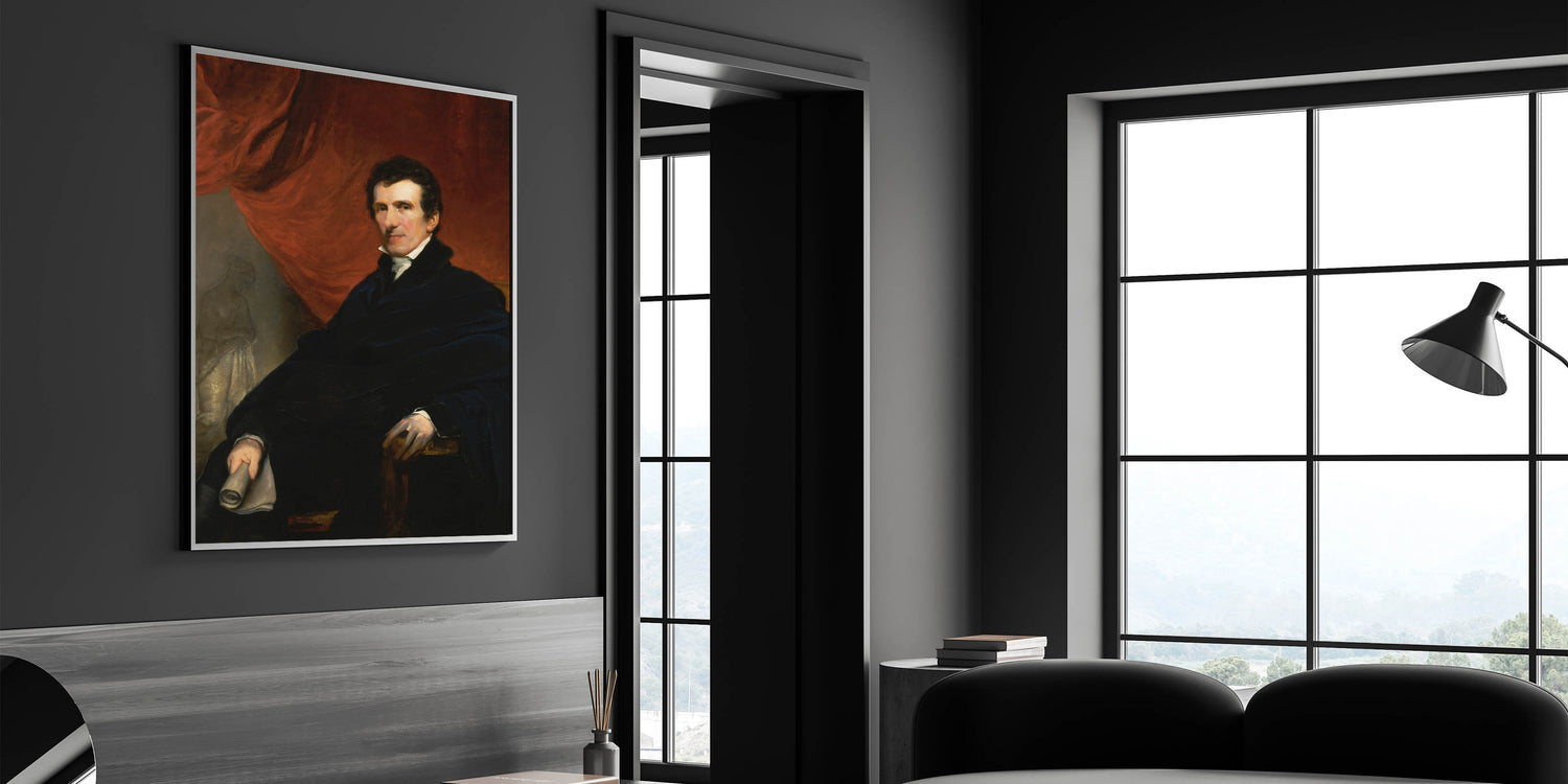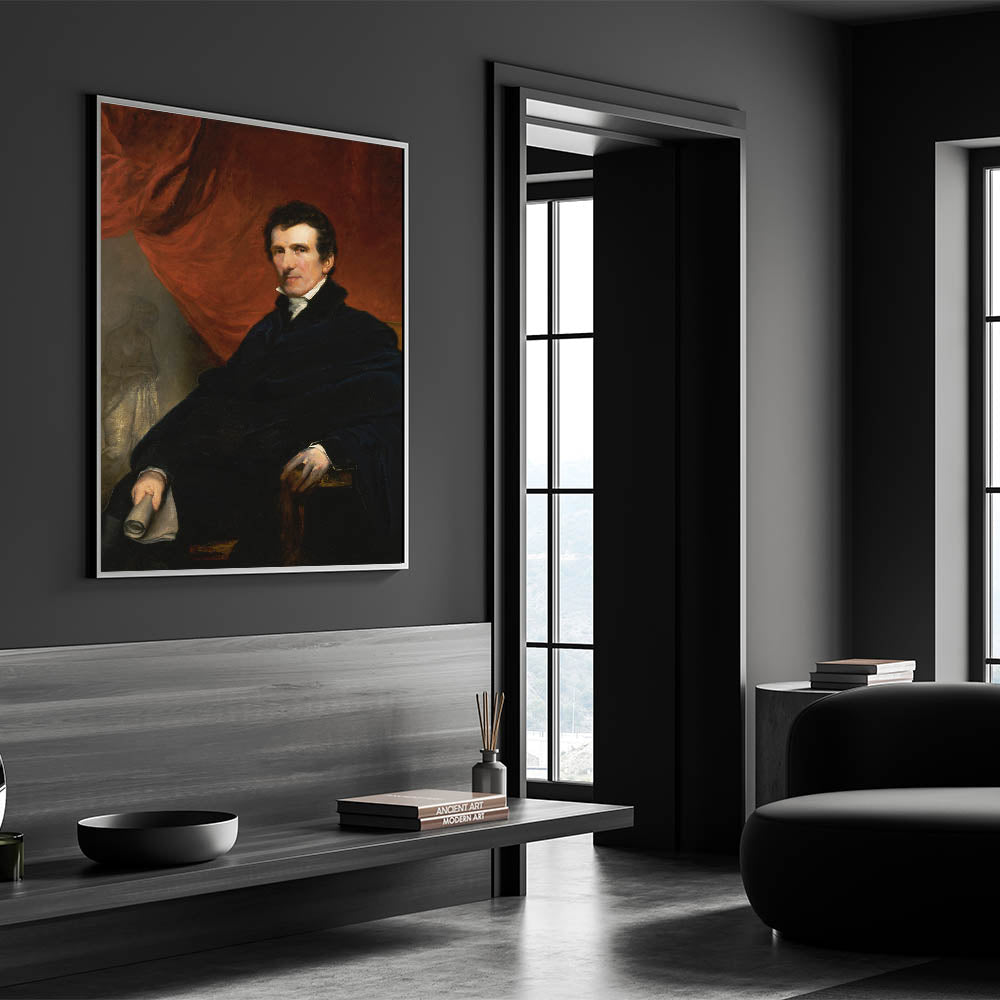 Discover the refined elegance of Antonio Canova by John Jackson, a distinguished portrait of the celebrated Italian sculptor. This Romantic-era masterpiece captures Canova in a contemplative pose, seated in a richly detailed setting with a striking red drapery in the background. The painting reflects Jackson’s exceptional skill in portraying depth, texture, and the dignified presence of his subject.