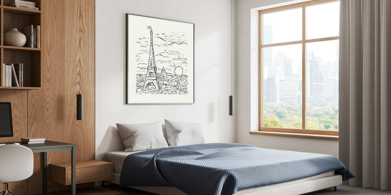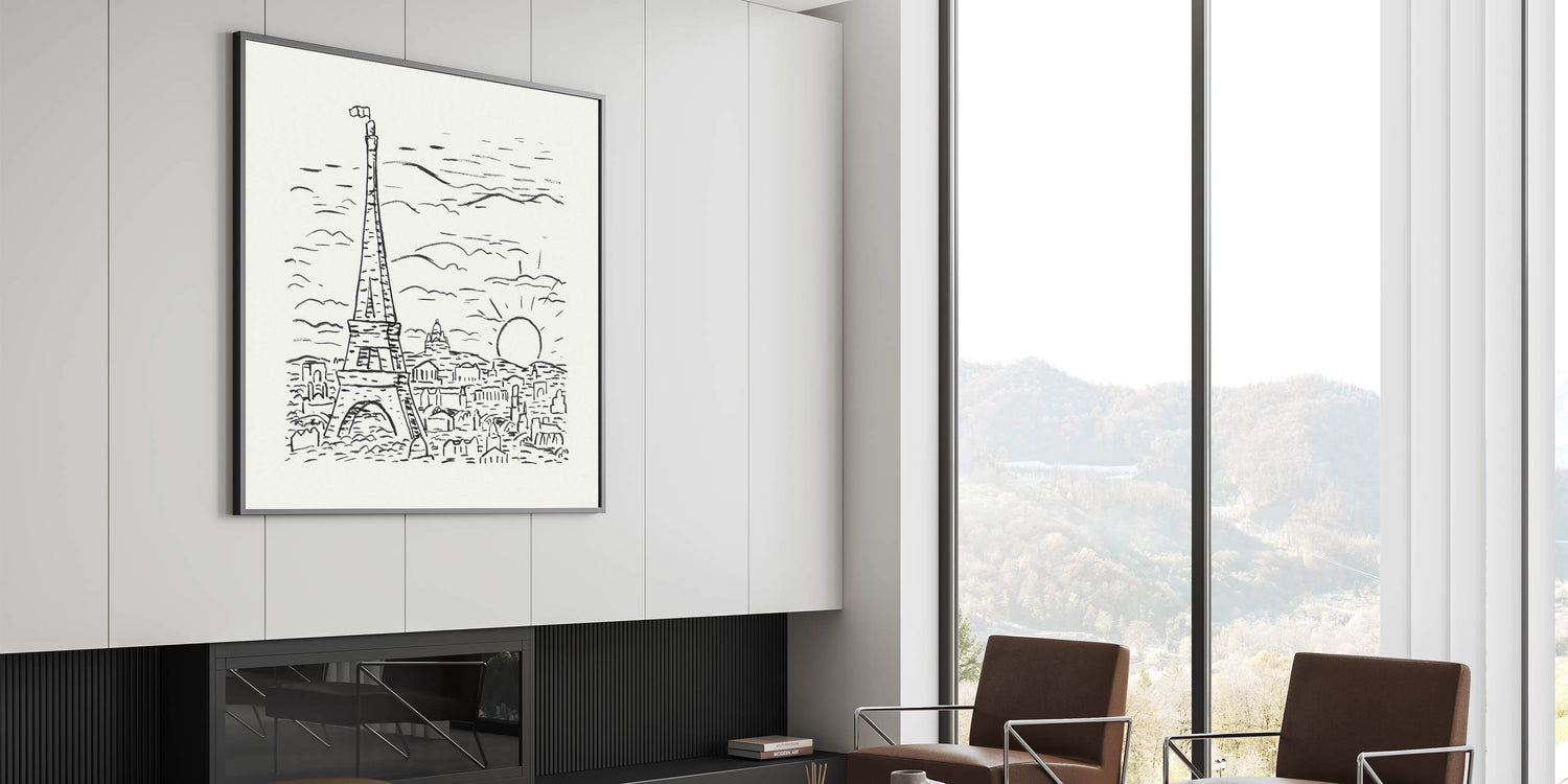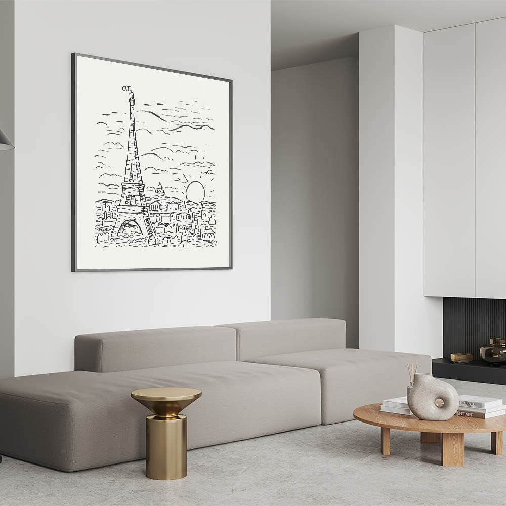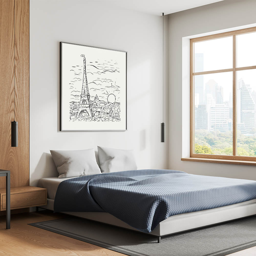 Celebrate the timeless charm of Paris with this striking Expressionist depiction of the Eiffel Tower. This monochromatic artwork, created in an abstract yet minimalistic style, embodies the essence of Modern Expressionism. The bold black strokes against the white background create a harmonious balance, making this piece a captivating addition to any space.