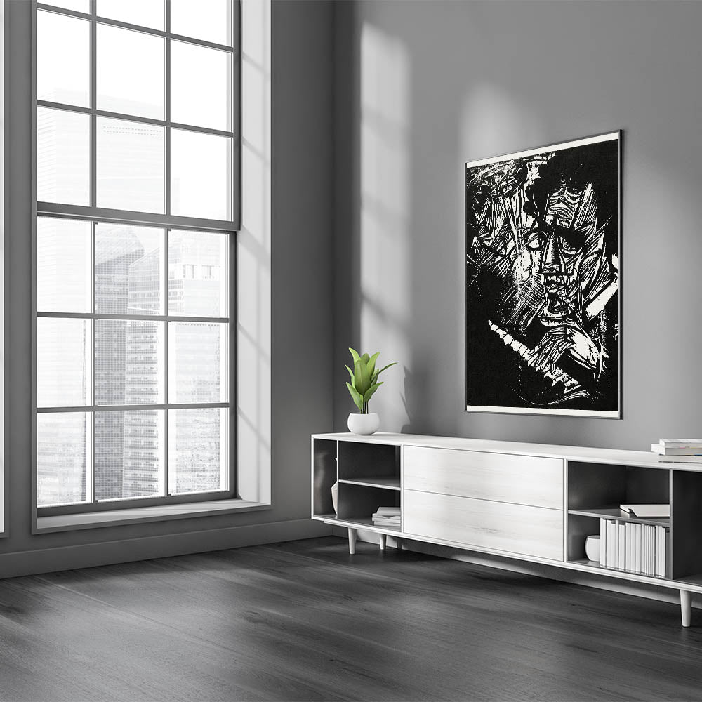 Capture the raw emotion and energy of Expressionism with this striking Expressionist Art piece. Featuring a dramatic black-and-white portrait with angular, abstract forms, this Modern Expressionism artwork evokes deep introspection and a sense of artistic rebellion. The intricate details and bold contrasts make this Abstract Expressionism piece a compelling addition to any art collection.