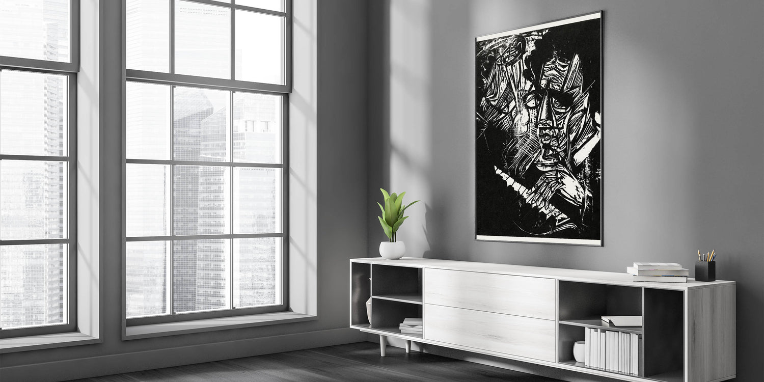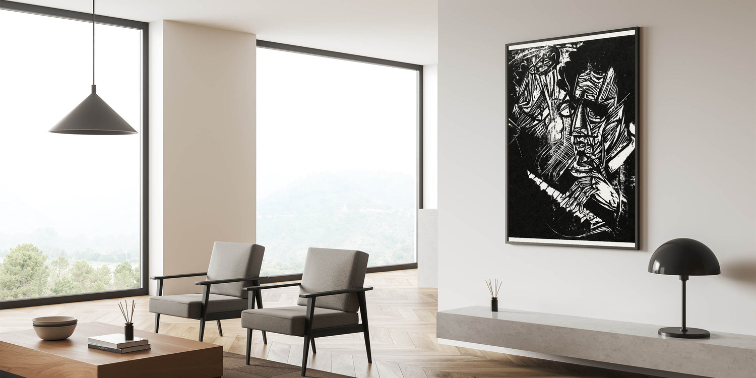 - Perfect for lovers of Expressionist Art for Sale and dramatic, monochromatic wall art.