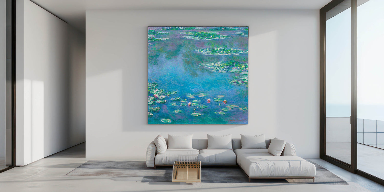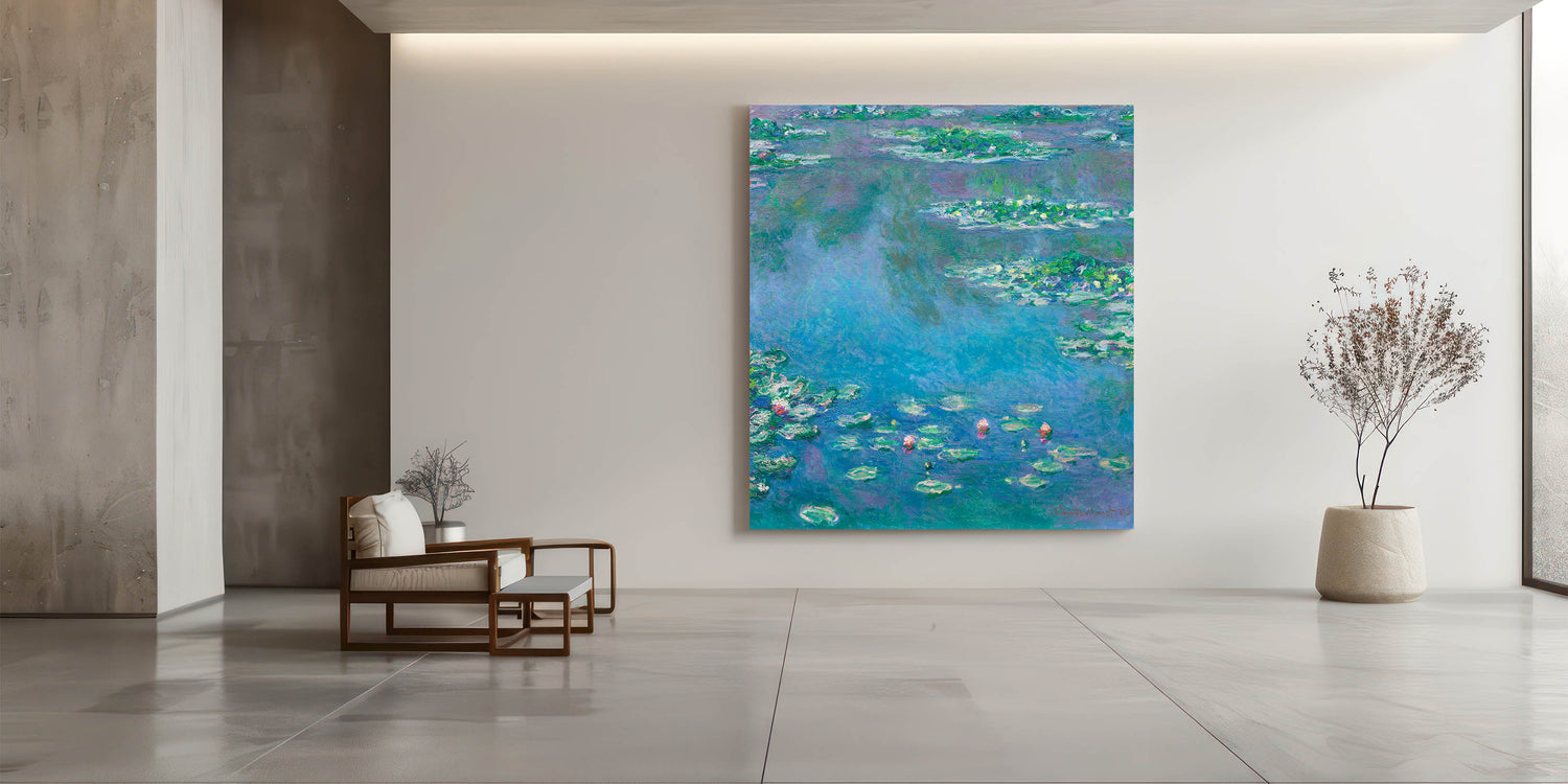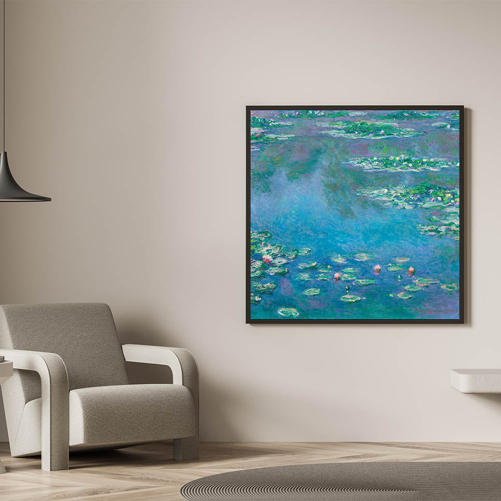 Immerse yourself in the tranquility of Claude Monet's Water Lilies, one of the most celebrated masterpieces of the Impressionist movement. This artwork beautifully captures the reflective surface of a serene pond, dotted with vibrant pink lilies and surrounded by lush greenery. Monet’s signature brushstrokes and use of light and color create a calming, dreamlike effect, making this piece an exquisite addition to any space.