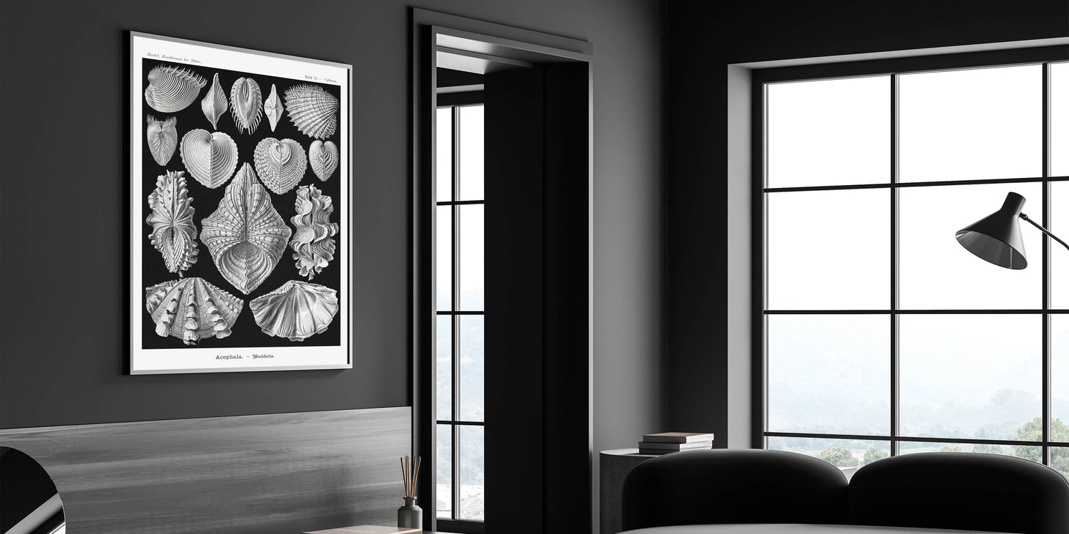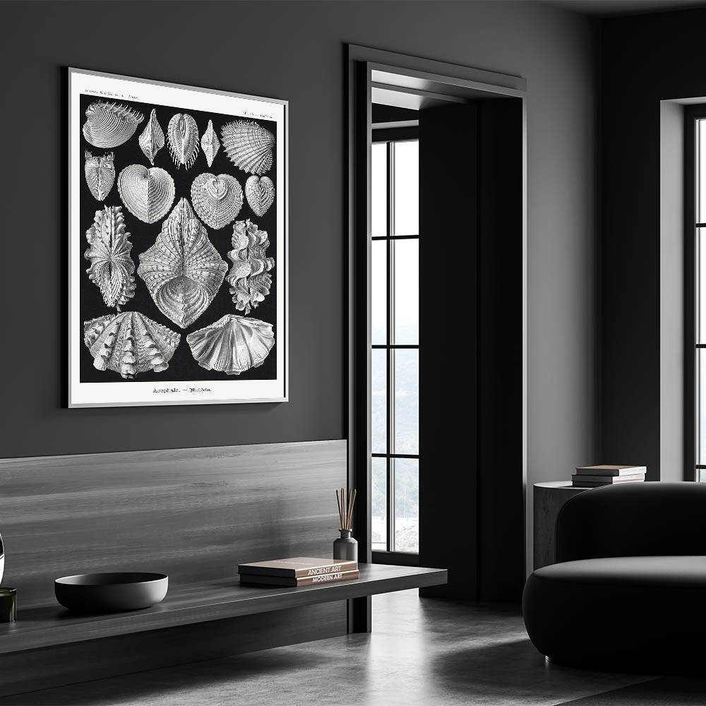 Ernst Haeckel’s Shell Illustrations - Elegant Black and White Wall Art
