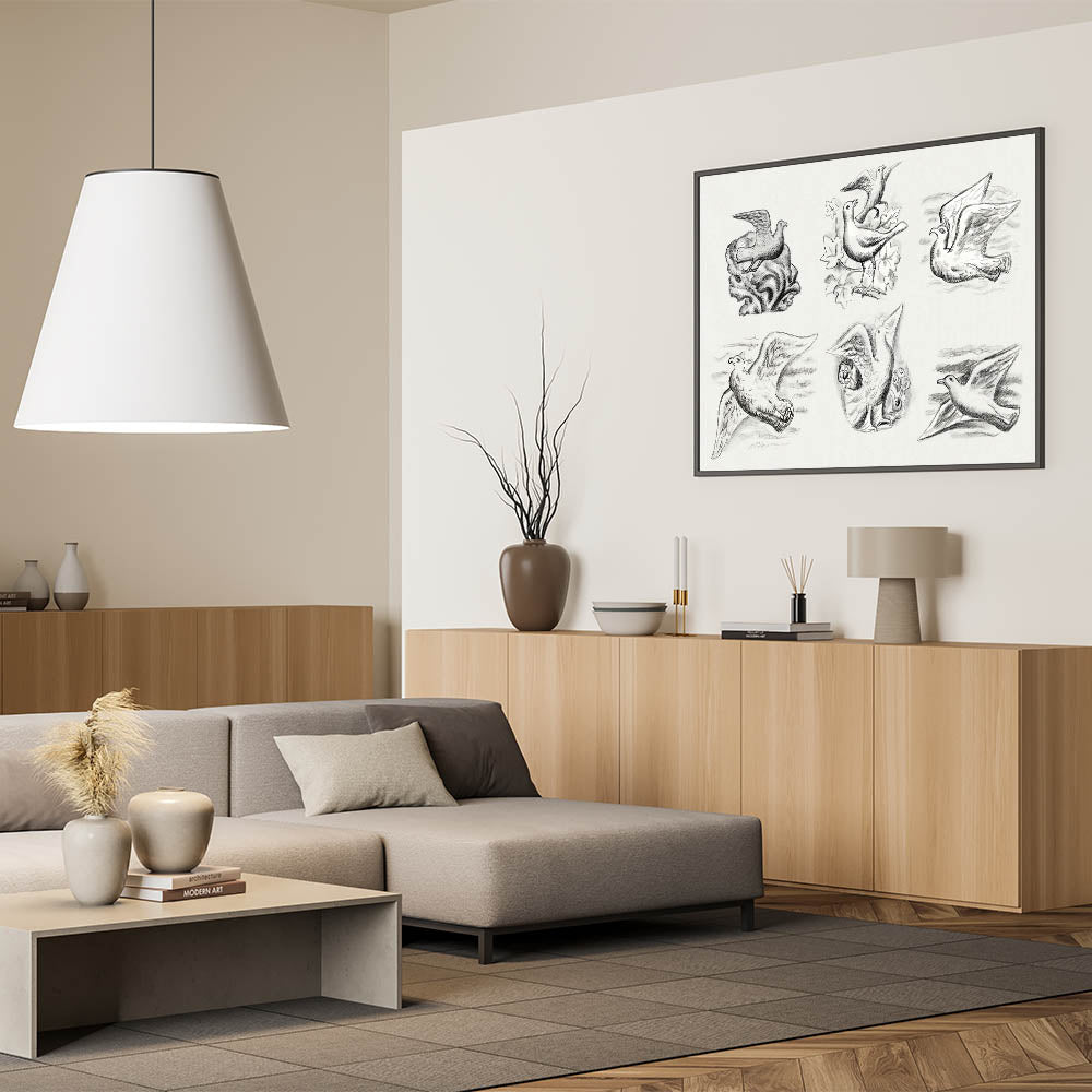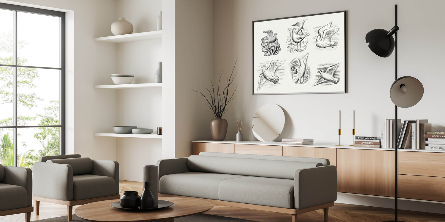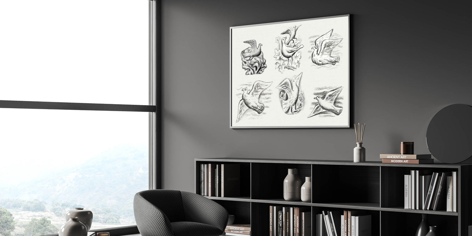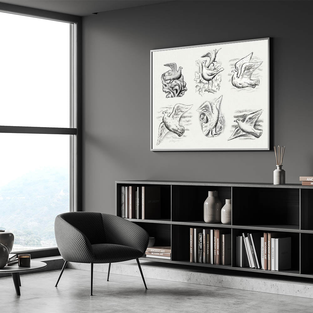 Celebrate the elegance of Expressionism with Leo Gestel's "Seven Pigeons" (ca. 1939–1941), a masterful sketch that brings movement and life to a simple yet captivating composition. This piece blends the spontaneity of modern Expressionism with the delicacy of natural subjects, making it an excellent addition to any art lover's collection.