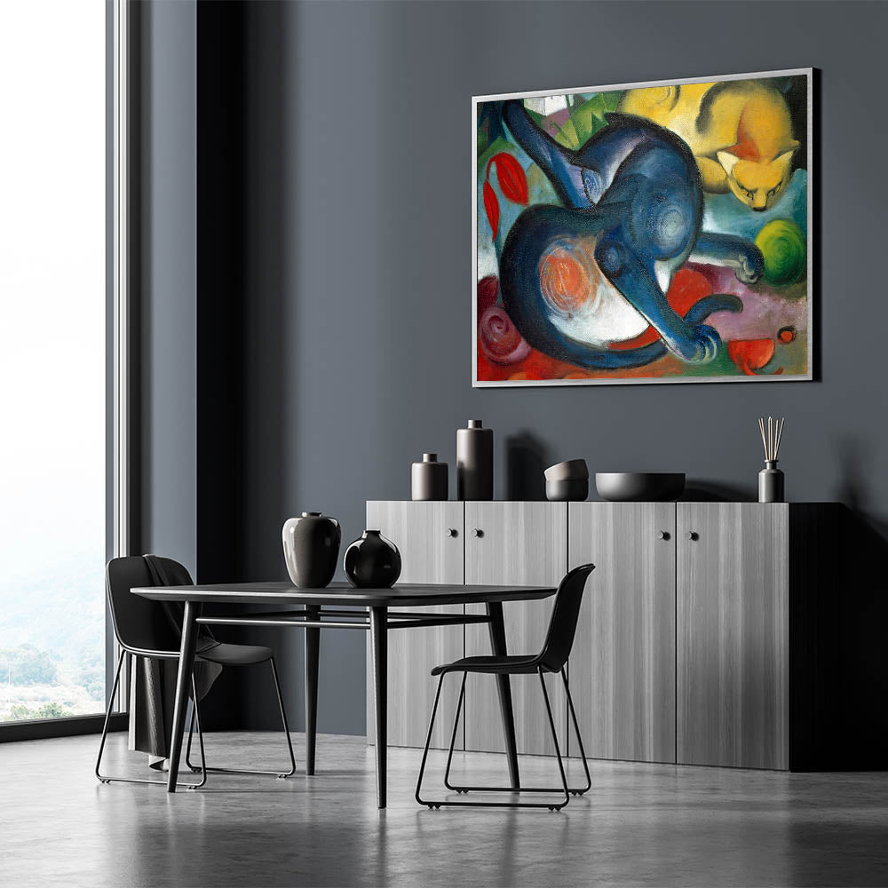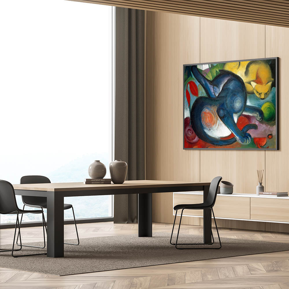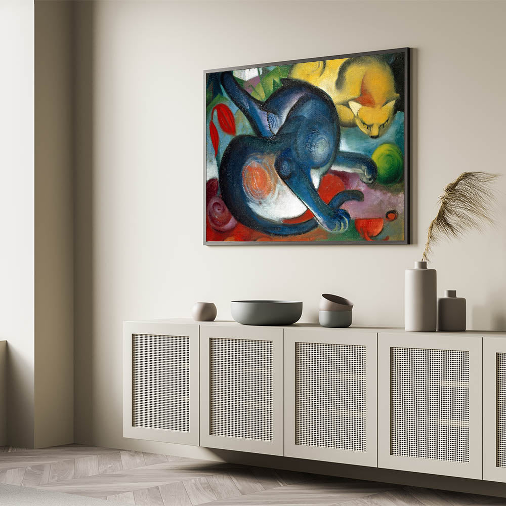 Celebrate the artistry of Franz Marc with "Two Cats, Blue and Yellow," a decorative Expressionist wall art piece that brings creativity and warmth to your home.Perfect for art lovers and collectors, this piece embodies the spirit of Abstract Expressionism. Its playful yet sophisticated composition makes it ideal for living rooms, creative spaces, or modern offices, where it can serve as a conversation-starting centerpiece.