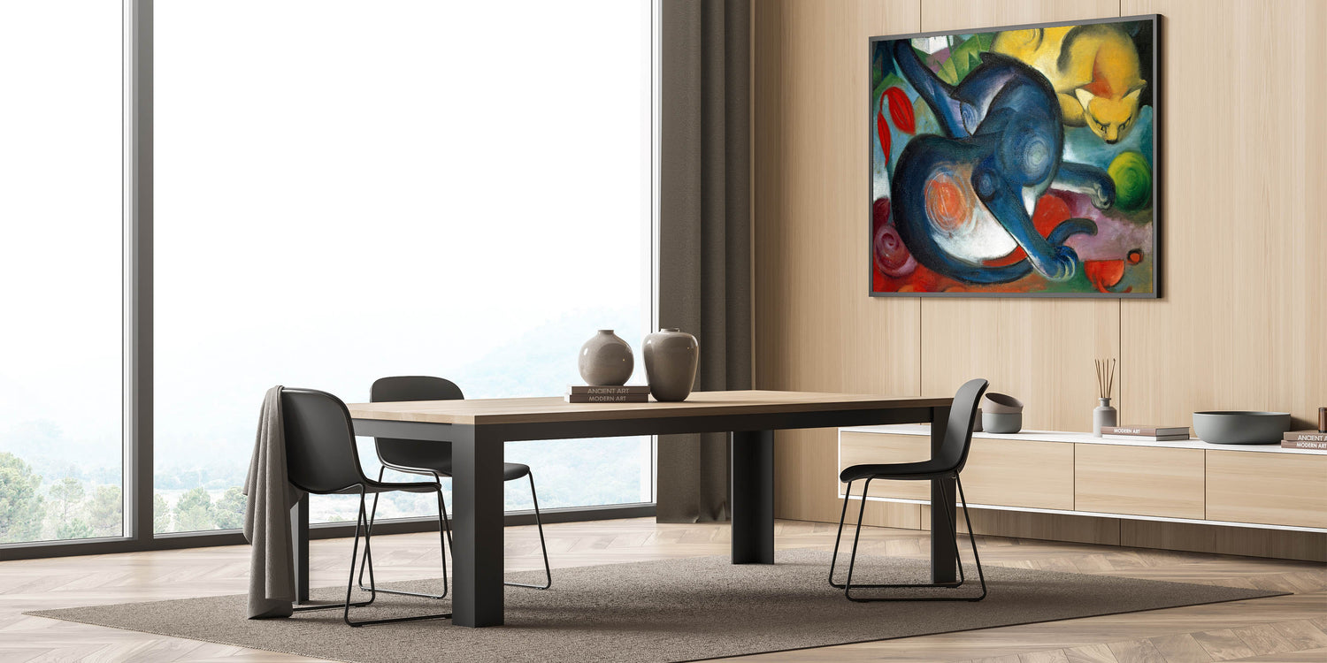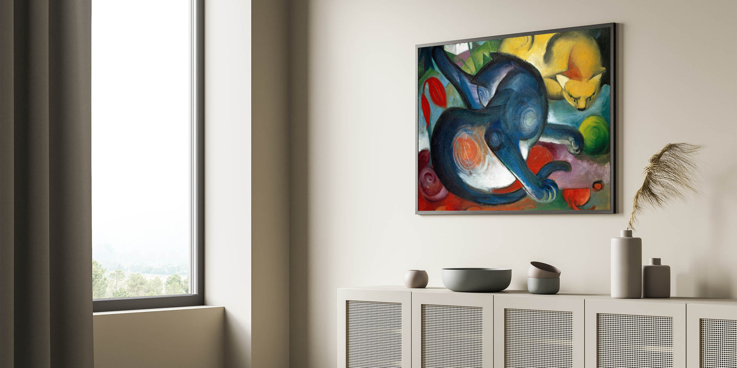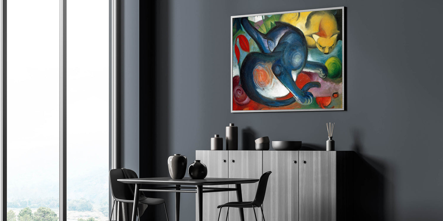 Celebrate the artistry of Franz Marc with "Two Cats, Blue and Yellow," a decorative Expressionist wall art piece that brings creativity and warmth to your home.Perfect for art lovers and collectors, this piece embodies the spirit of Abstract Expressionism. Its playful yet sophisticated composition makes it ideal for living rooms, creative spaces, or modern offices, where it can serve as a conversation-starting centerpiece.