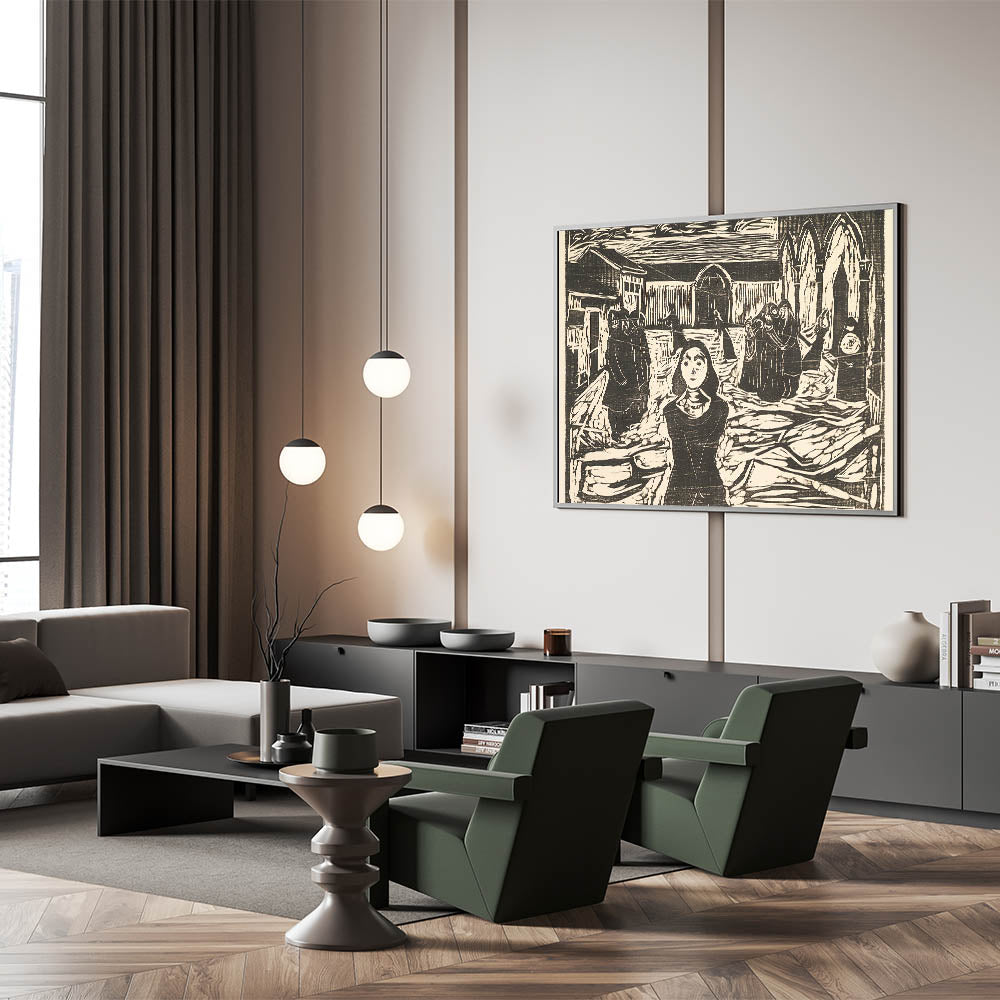 Elevate your space with the thought-provoking artistry of Munch. "The Pretenders, The Last Hour" brings timeless depth and emotional resonance to your home or gallery.