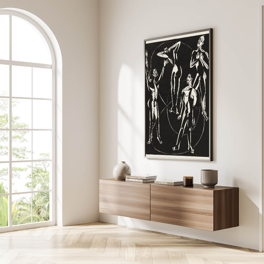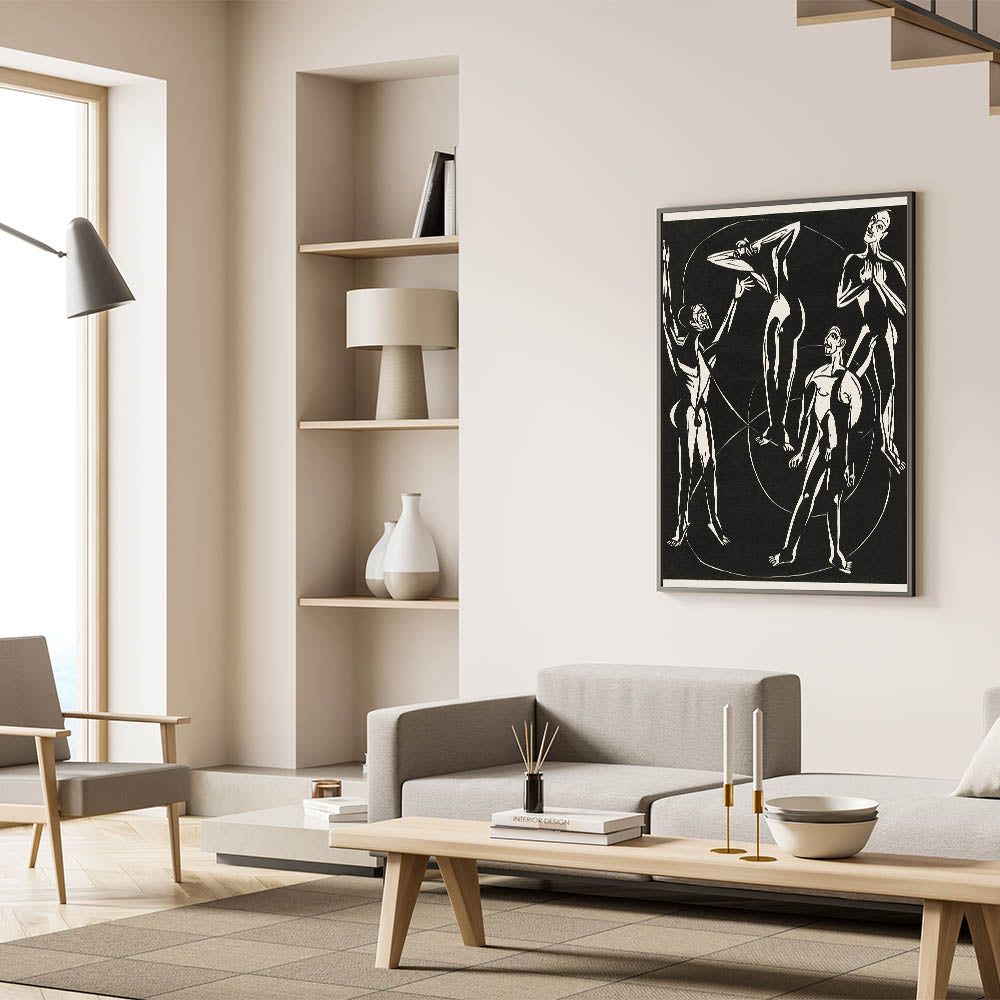 Explore the raw emotional intensity of Ernst Ludwig Kirchner’s Feelings. This bold Expressionist artwork captures the essence of human emotion through dynamic black-and-white contrasts and angular forms. The abstract figures convey movement and interconnectedness, inviting viewers to reflect on the complexity of human experiences. Kirchner’s striking woodcut technique adds depth and texture, making this piece a compelling focal point for any modern or minimalist space.