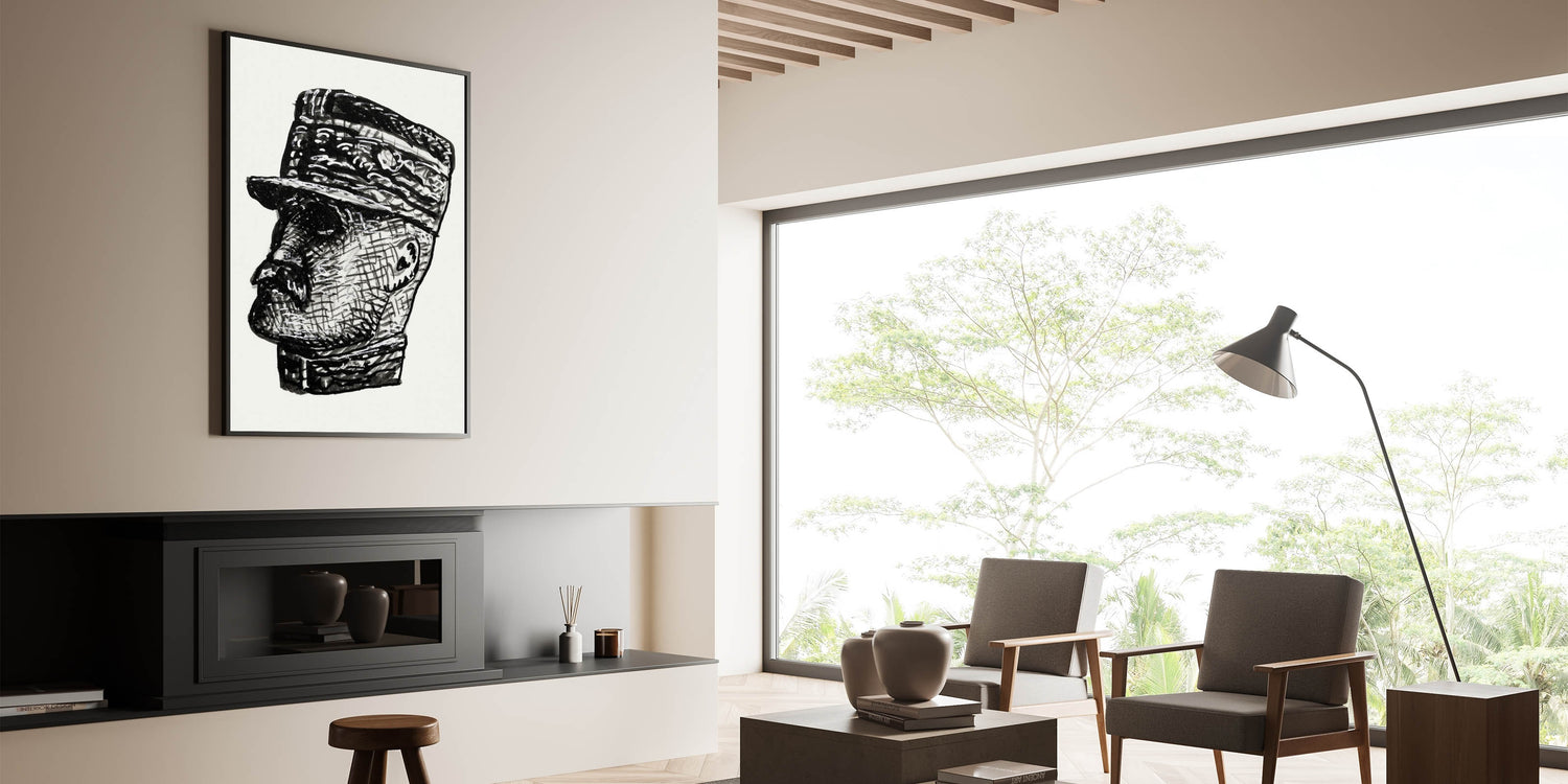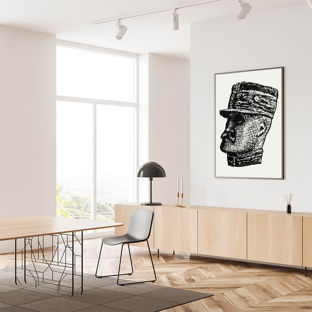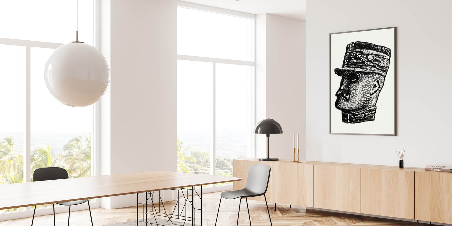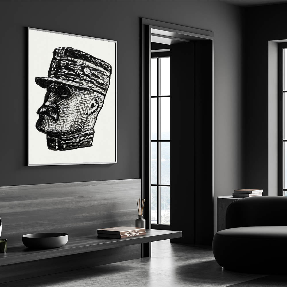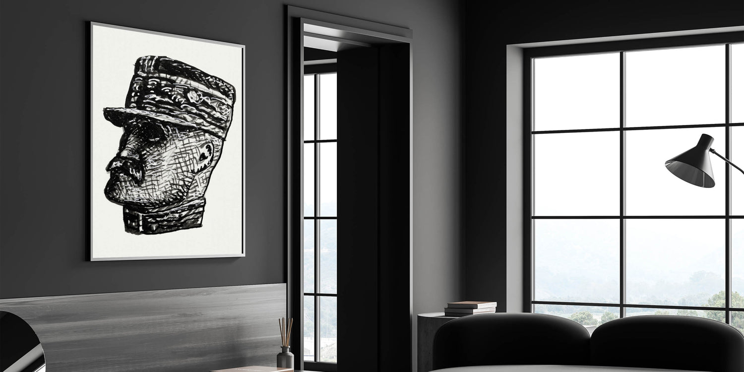 This Vibrant Expressionism Painting presents a bold Abstract Expressionism portrait of Ferdinand Foch, blending textured lines and sharp contrasts in a striking black-and-white design. The intricate detailing and expressive brushstrokes make this Expressionist Art for Sale a timeless piece, perfect for lovers of modern and historical art.