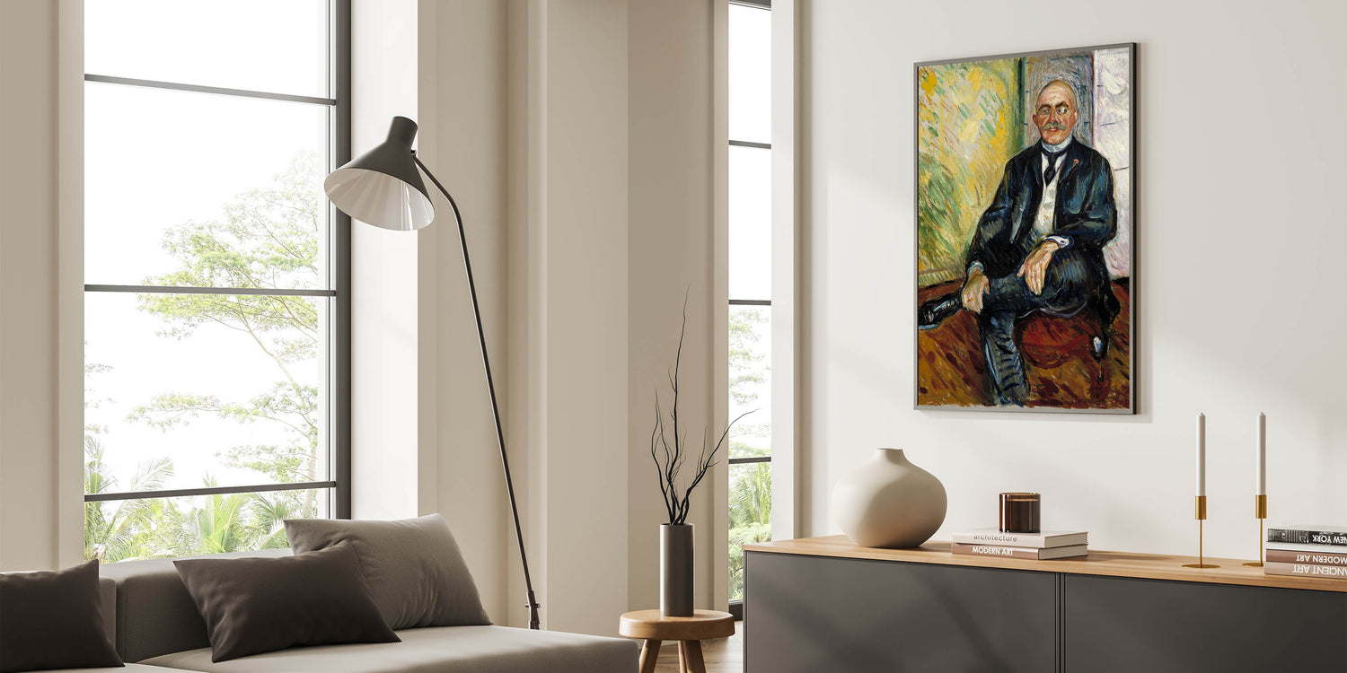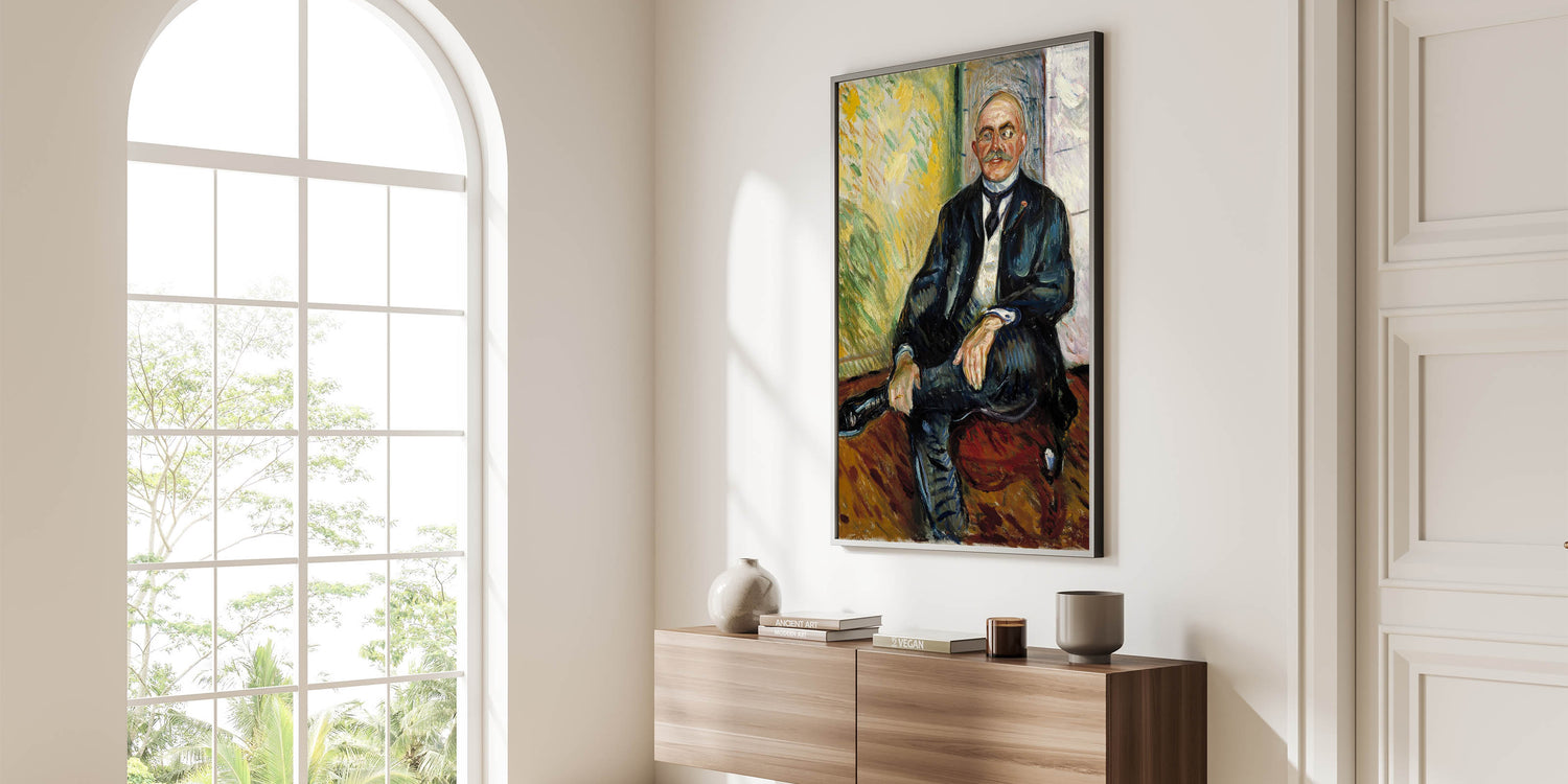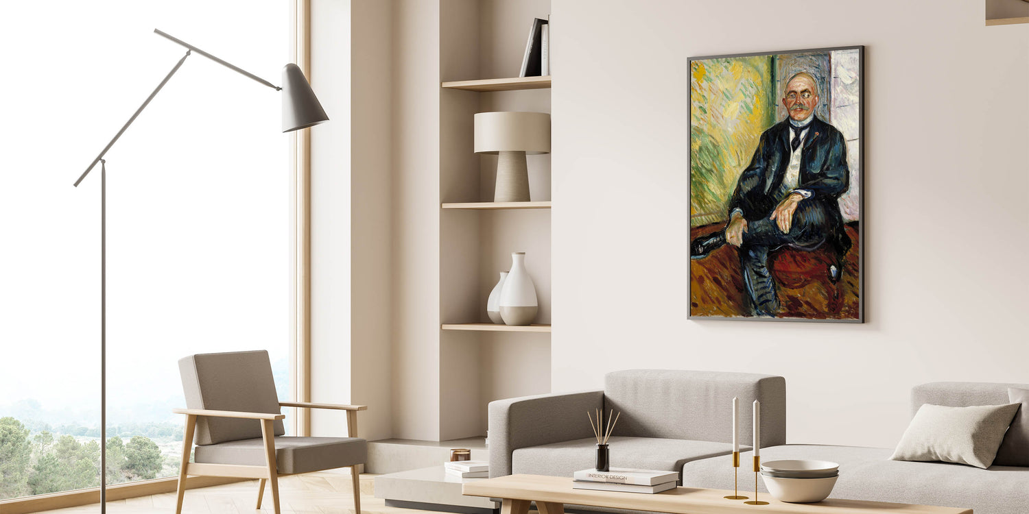 Bring a timeless masterpiece into your home with this Vibrant Expressionism Painting by Edvard Munch, featuring the Portrait of Gustaf Schiefler. This Abstract Expressionism artwork captures the essence of its subject through bold brushstrokes and a rich color palette. A striking depiction of individuality and sophistication, this piece is ideal for art collectors seeking Expressionist Art for Sale.