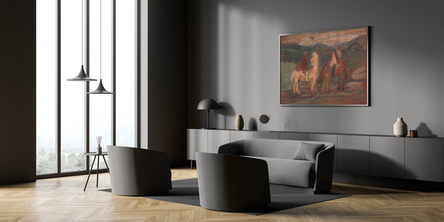 Transform your space with the calming yet powerful imagery of Riders. Ideal for adding a sense of movement and elegance to any room.