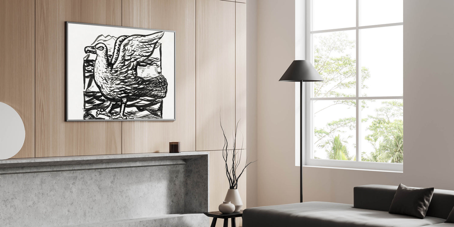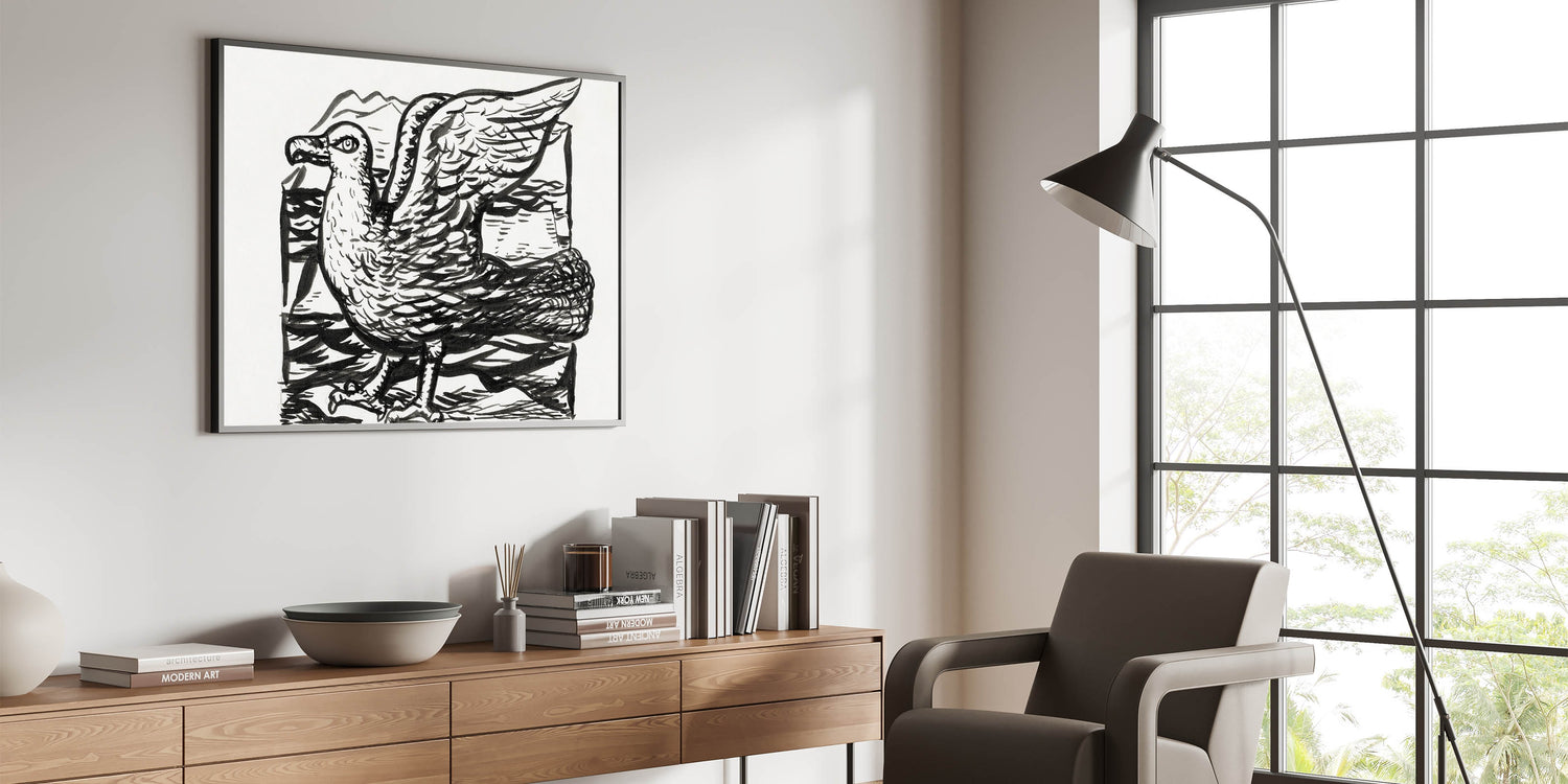 Add the timeless beauty of Seagull to your art collection. This expressive piece is a perfect centerpiece for spaces that value bold simplicity and nature-inspired art.