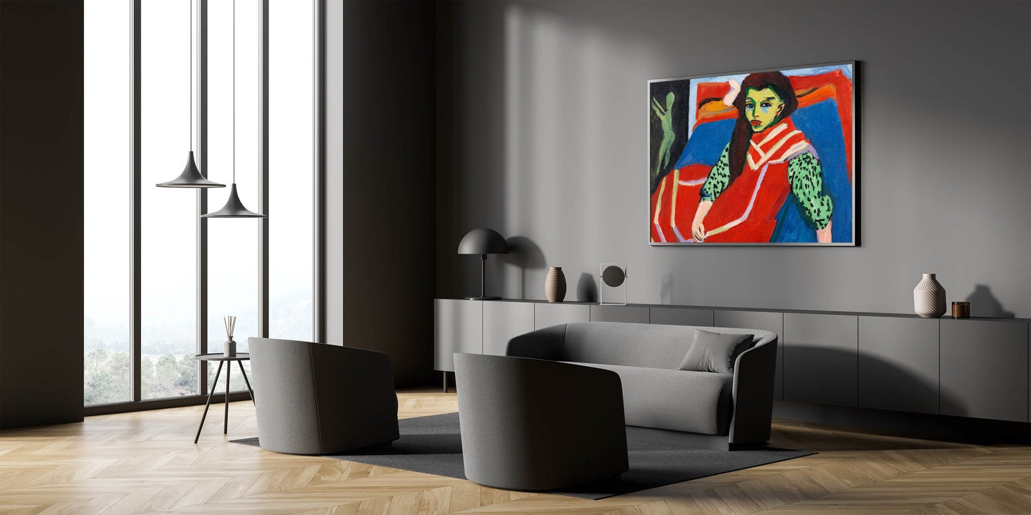 Enhance your home or office with the dramatic allure of Seated Girl (1910). This artwork is a bold statement piece that embodies the spirit of Expressionism.