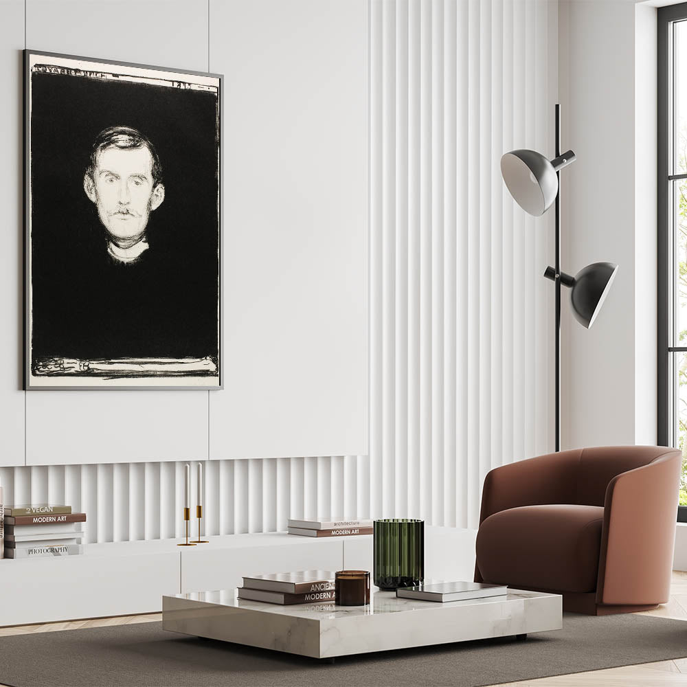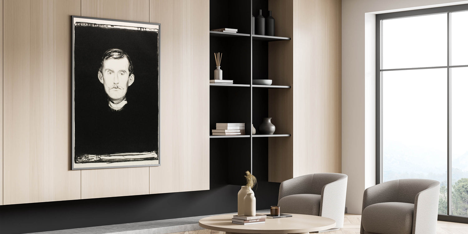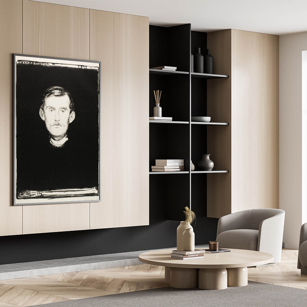 Immerse yourself in the profound depths of Expressionist art with Edvard Munch's "Self-Portrait" (1895). This timeless piece captures the stark contrasts and raw emotional intensity that define Modern Expressionism. With its minimalist composition and evocative palette, this artwork stands as a symbol of introspection and artistic mastery.