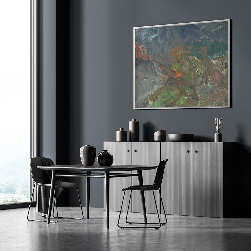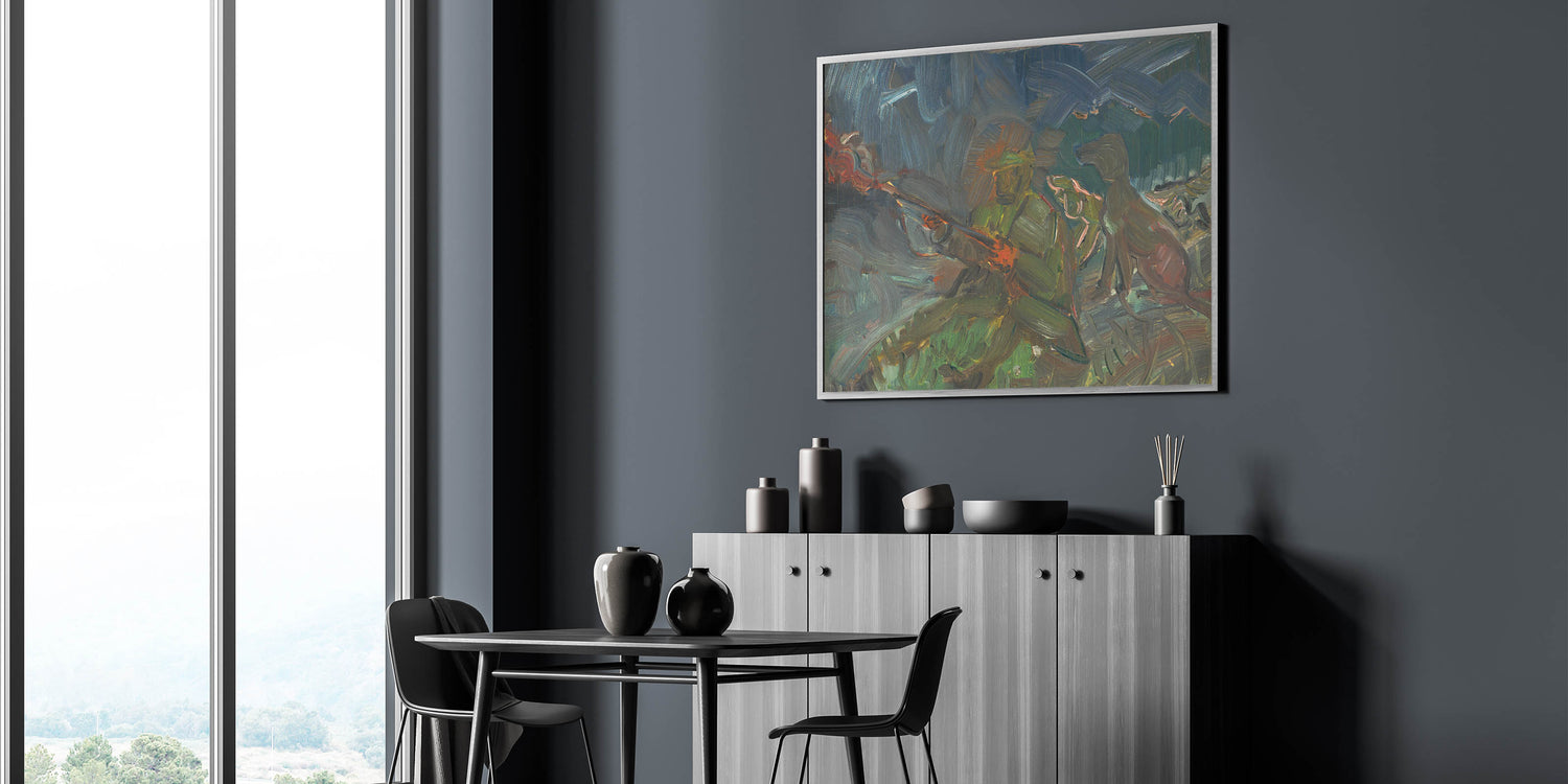 Add a bold and energetic centerpiece to your collection with this decorative Expressionist wall art, a stunning representation of the Expressionism movement's focus on raw emotion and vivid imagery.