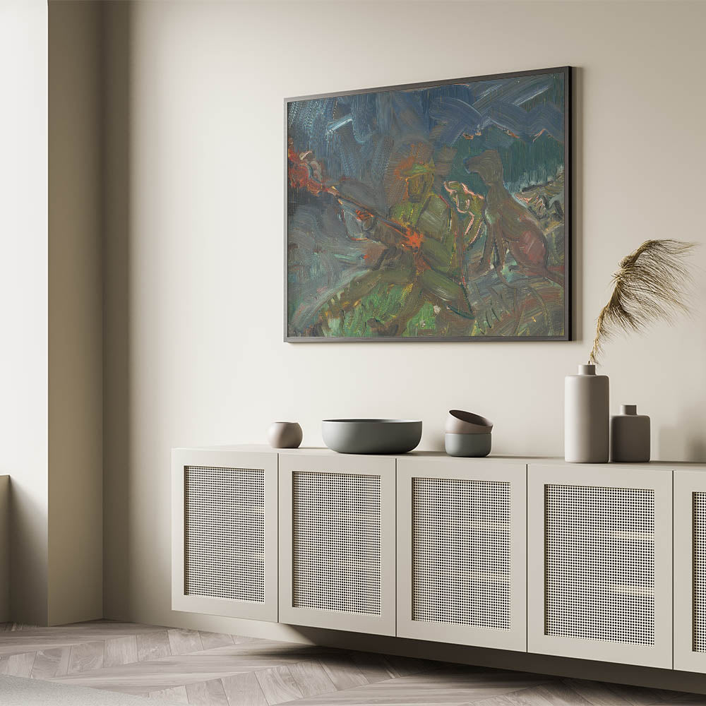 Immerse yourself in the vivid and chaotic world of Abstract Expressionism with Arnold Peter Weisz-Kubínčan’s "Shot." This dynamic painting captures a moment of intensity and motion, with expressive brushstrokes and a bold color palette. Perfect for art collectors and admirers of emotionally charged, modern artwork, this piece brings energy and depth to any room.