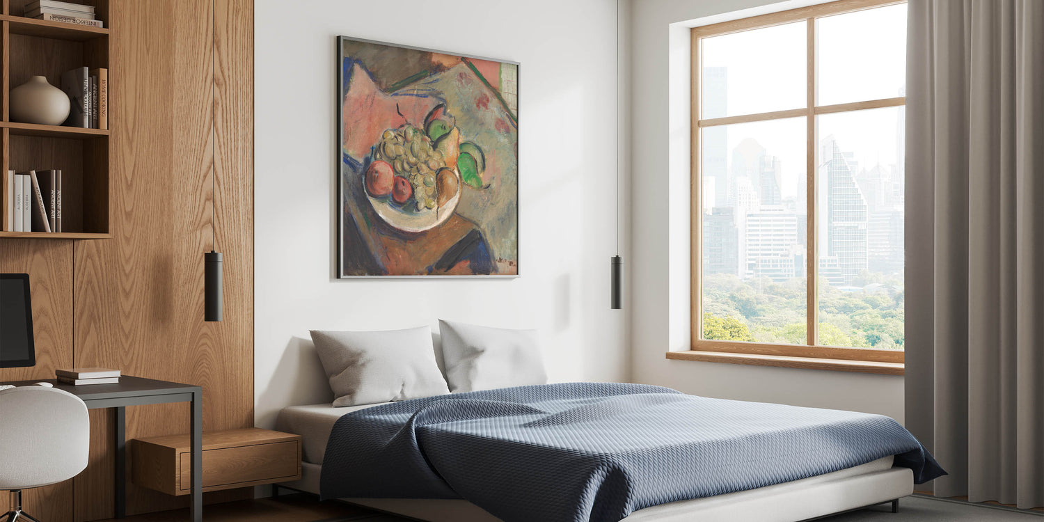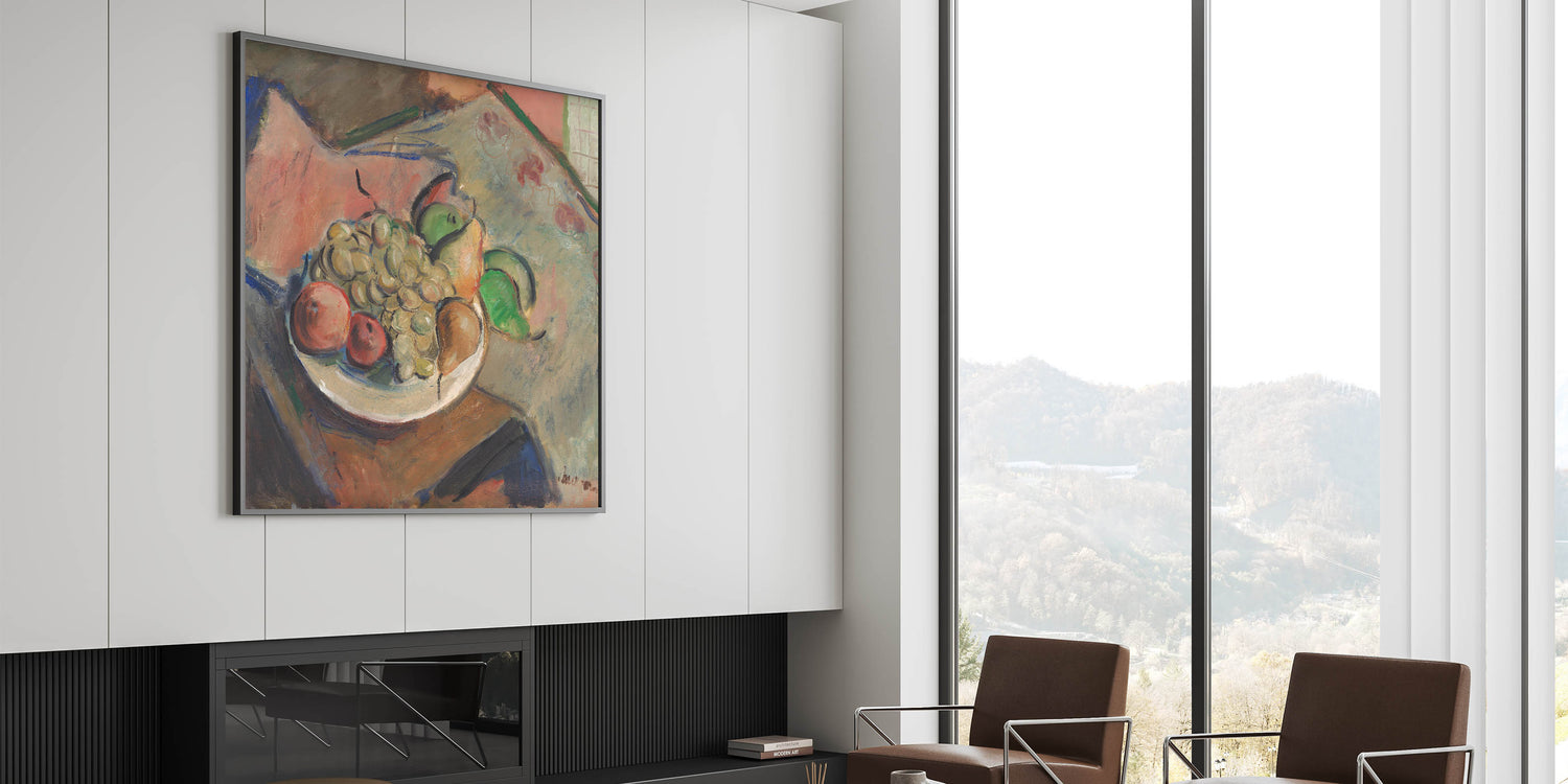 Immerse yourself in the vibrant world of Expressionism with Cyprián Majerník’s "Still Life." This beautifully painted piece captures the essence of everyday life through bold, expressive brushwork and a rich color palette. Featuring a plate of fruit, the dynamic colors and shapes evoke both serenity and energy, bringing a unique character to this classic subject.