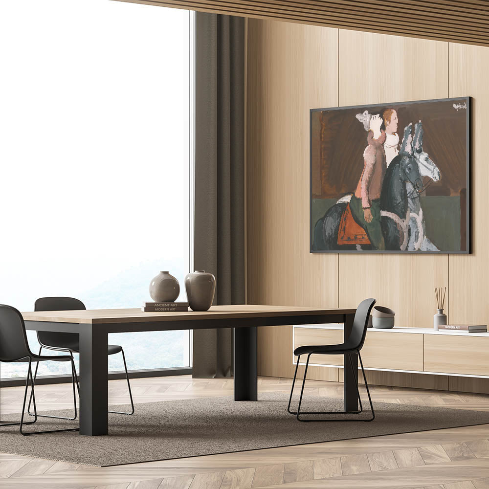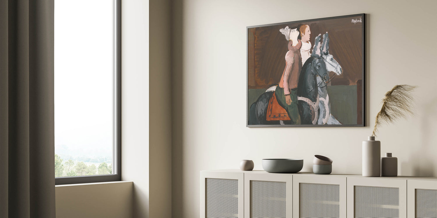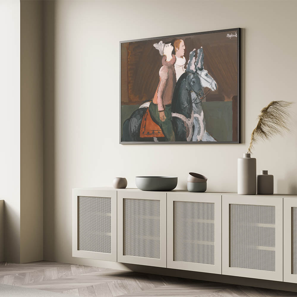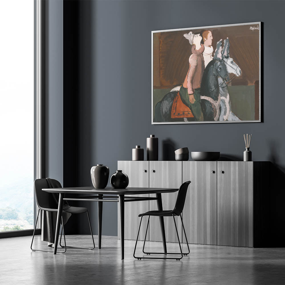 Add a touch of elegance and motion to your space with "Two Riders" by Cyprián Majerník. This captivating Expressionist artwork captures a moment of timeless grace, showcasing two riders on horseback amidst a striking composition of earthy tones and dynamic brushstrokes. The interplay of warm and muted colors creates a harmonious and thought-provoking visual experience.