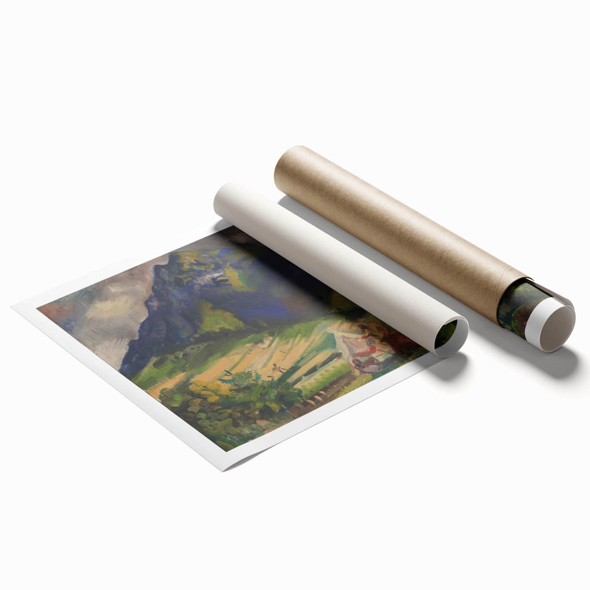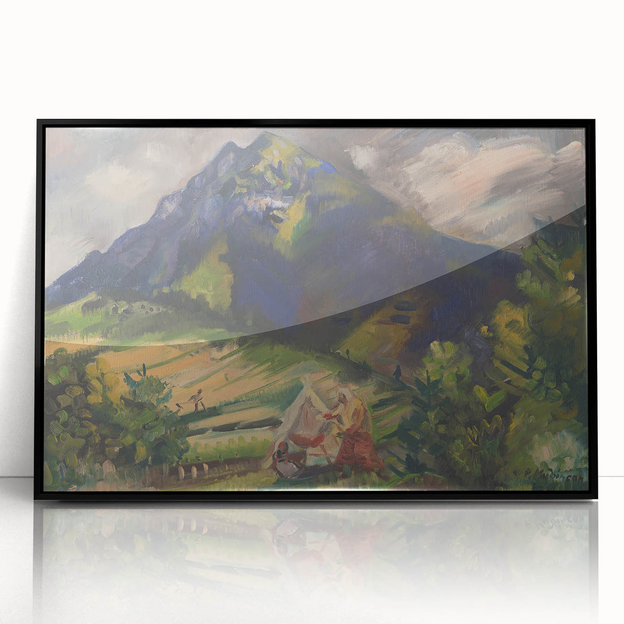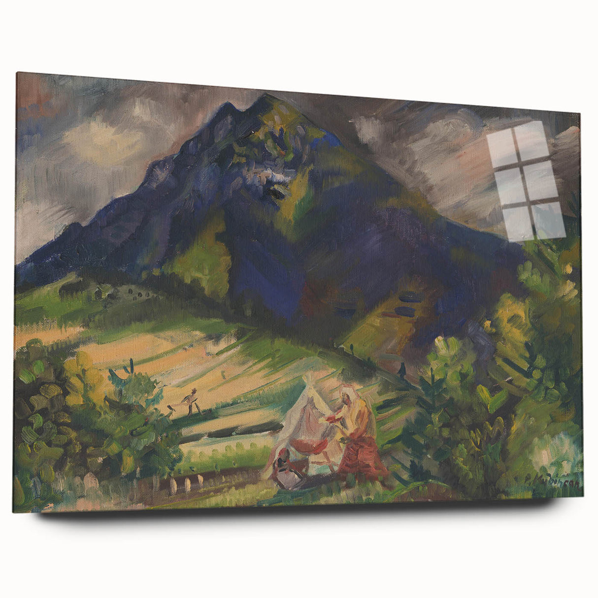 Immerse yourself in the majesty of nature with Arnold Peter Weisz-Kubínčan’s "Choc." This Expressionist masterpiece portrays a towering mountain beneath a moody sky, surrounded by vibrant fields and lush greenery. The interplay of rich blues, deep greens, and golden yellows captures the energy and serenity of the natural world.
