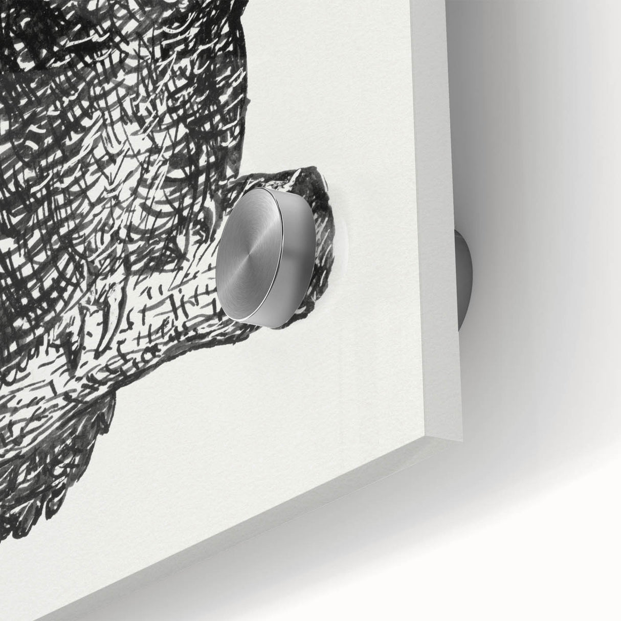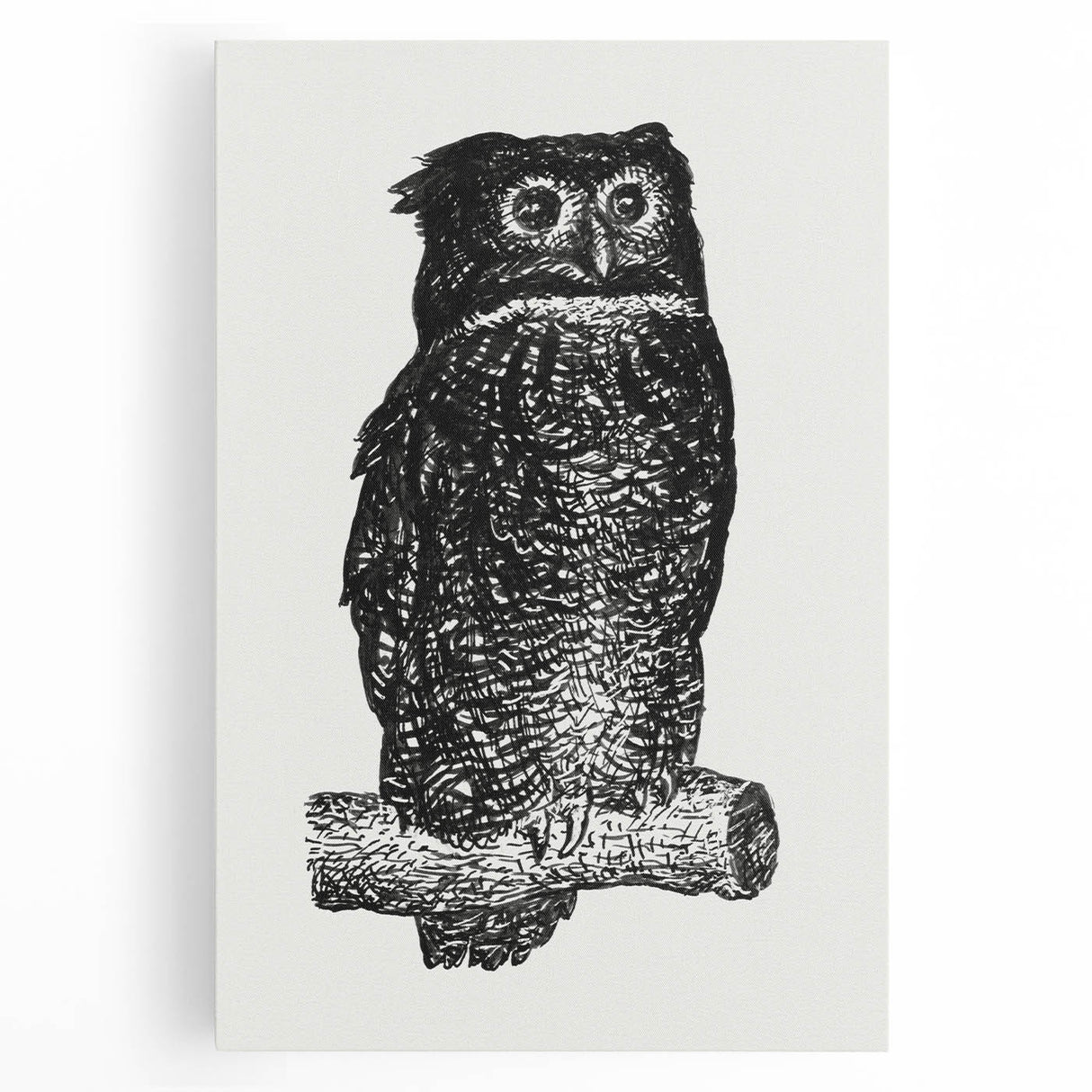 Enhance your decor with this striking Expressionist owl wall art. Featuring a bold black-and-white composition, this artwork captures the intricate details of the owl with textured, expressive brushstrokes. The detailed rendering of feathers and eyes exudes a sense of mystery and wisdom, making it a perfect centerpiece for nature enthusiasts and art lovers alike.