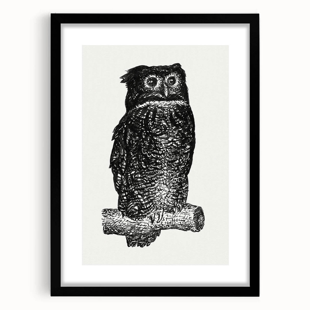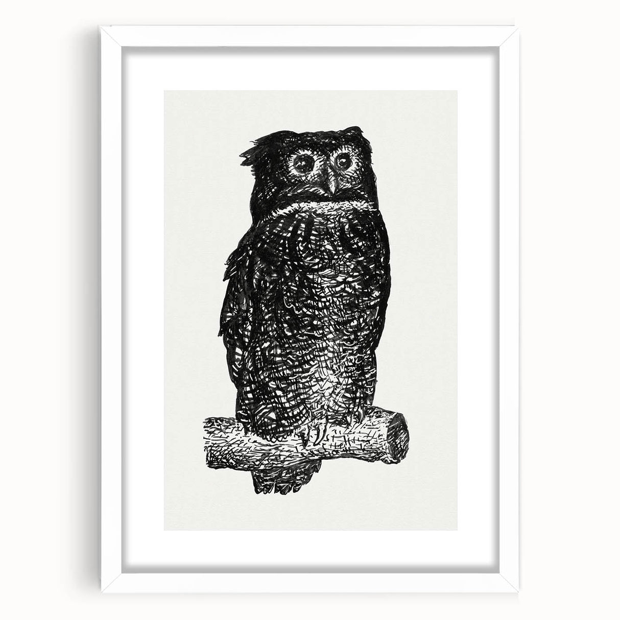 Expressionist Owl Wall Art - Bold Black & White Nature-Inspired Design
