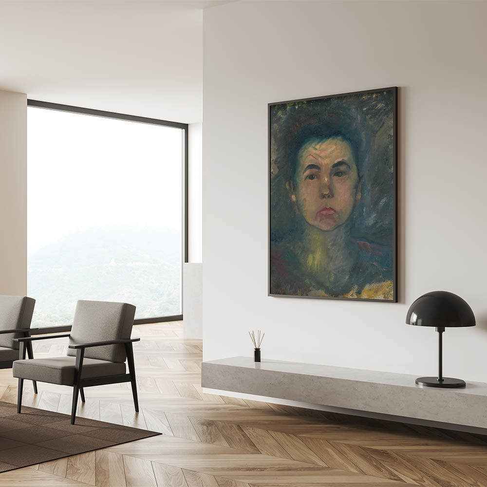 Capture the depth of human emotion with this striking Expressionist portrait of a woman. This Contemporary Expressionist Art piece showcases the artist's masterful use of bold brushstrokes and a moody, muted color palette to convey introspection and mystery. The abstract yet evocative depiction draws the viewer into the subject’s gaze, making it a captivating and thought-provoking addition to any space.