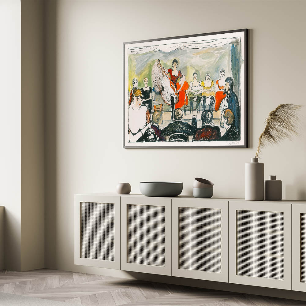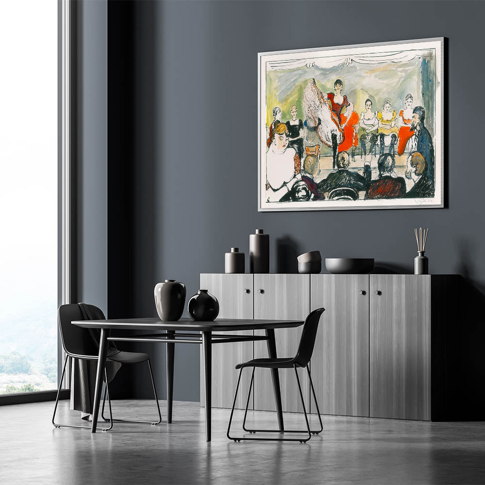 Perfect for art enthusiasts and collectors, "Tingletangle" offers an evocative blend of emotion, movement, and artistic depth. It serves as an eye-catching centerpiece, suitable for both modern and traditional interiors..Transform your space with "Tingletangle," a decorative Expressionist wall art piece that celebrates the vibrance of life and performance through a modern artistic lens.
