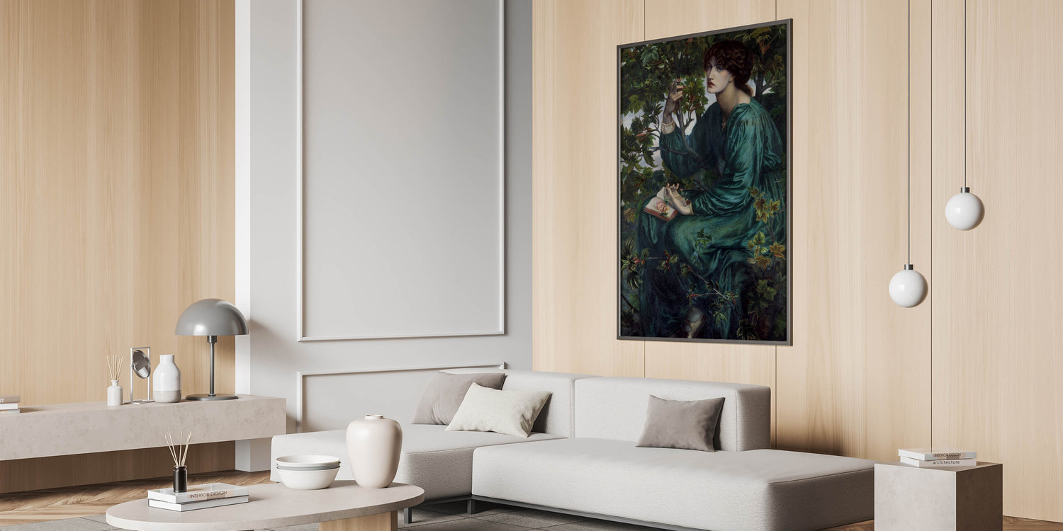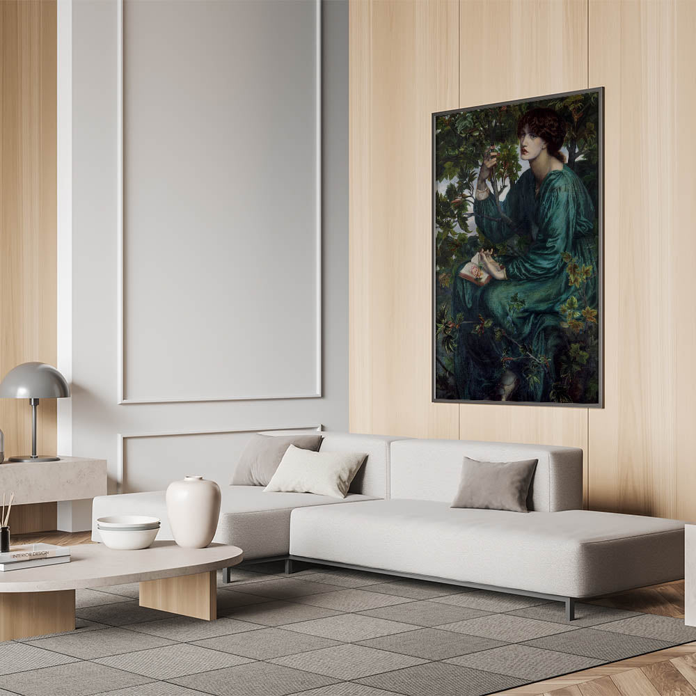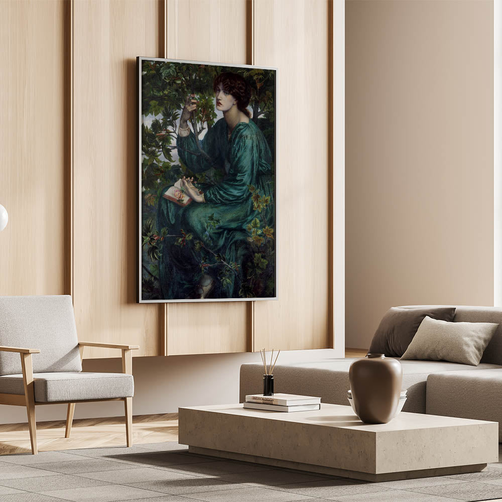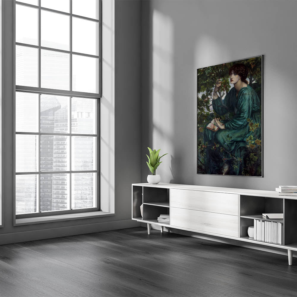 Add timeless beauty to your space with "The Day Dream," a celebrated Romanticism masterpiece by Dante Gabriel Rossetti. This evocative painting features a contemplative woman seated amidst lush greenery, adorned in a flowing green dress. With its rich details, dramatic use of light and shadow, and subtle emotional depth, this artwork exemplifies the elegance of Romantic art prints. Perfect for enhancing home decor, it captures the harmony of nature and human emotion central to the Romantic era.