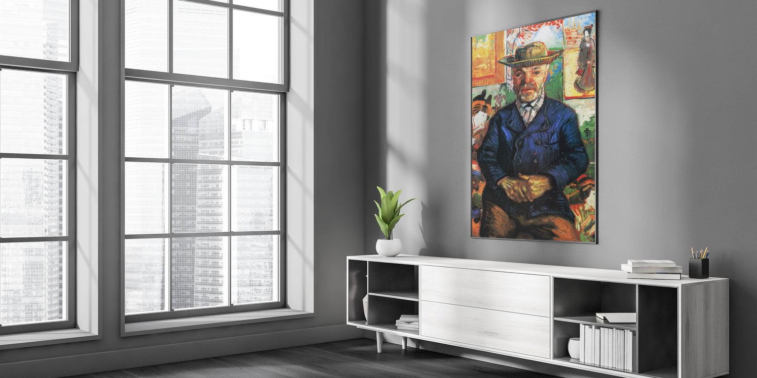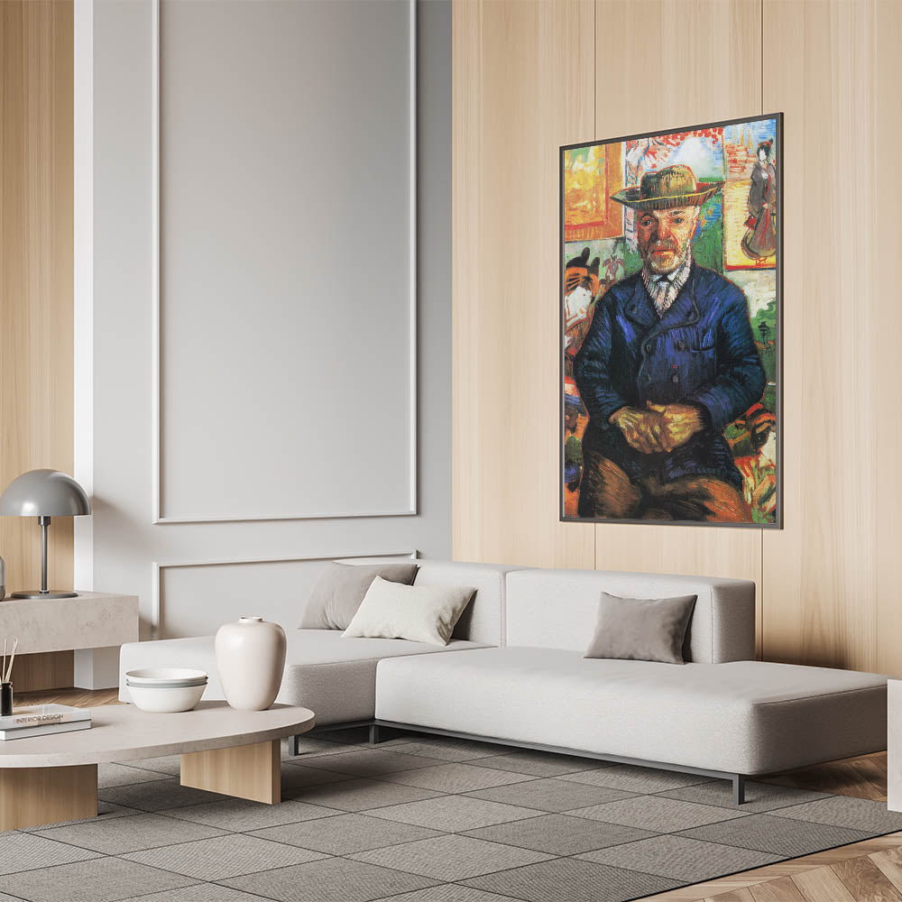 Enhance your space with Vincent van Gogh's "Portrait of Père Tanguy," a vibrant and deeply expressive masterpiece of French Impressionism. This iconic painting captures Père Tanguy, a prominent figure in the art world, surrounded by colorful Japanese prints and bright, expressive hues. Van Gogh’s intricate brushwork and bold palette create a stunning visual narrative that bridges cultures and celebrates the Impressionist movement.