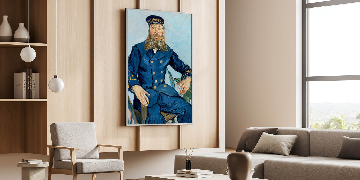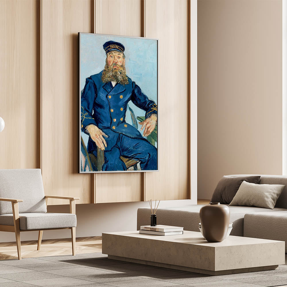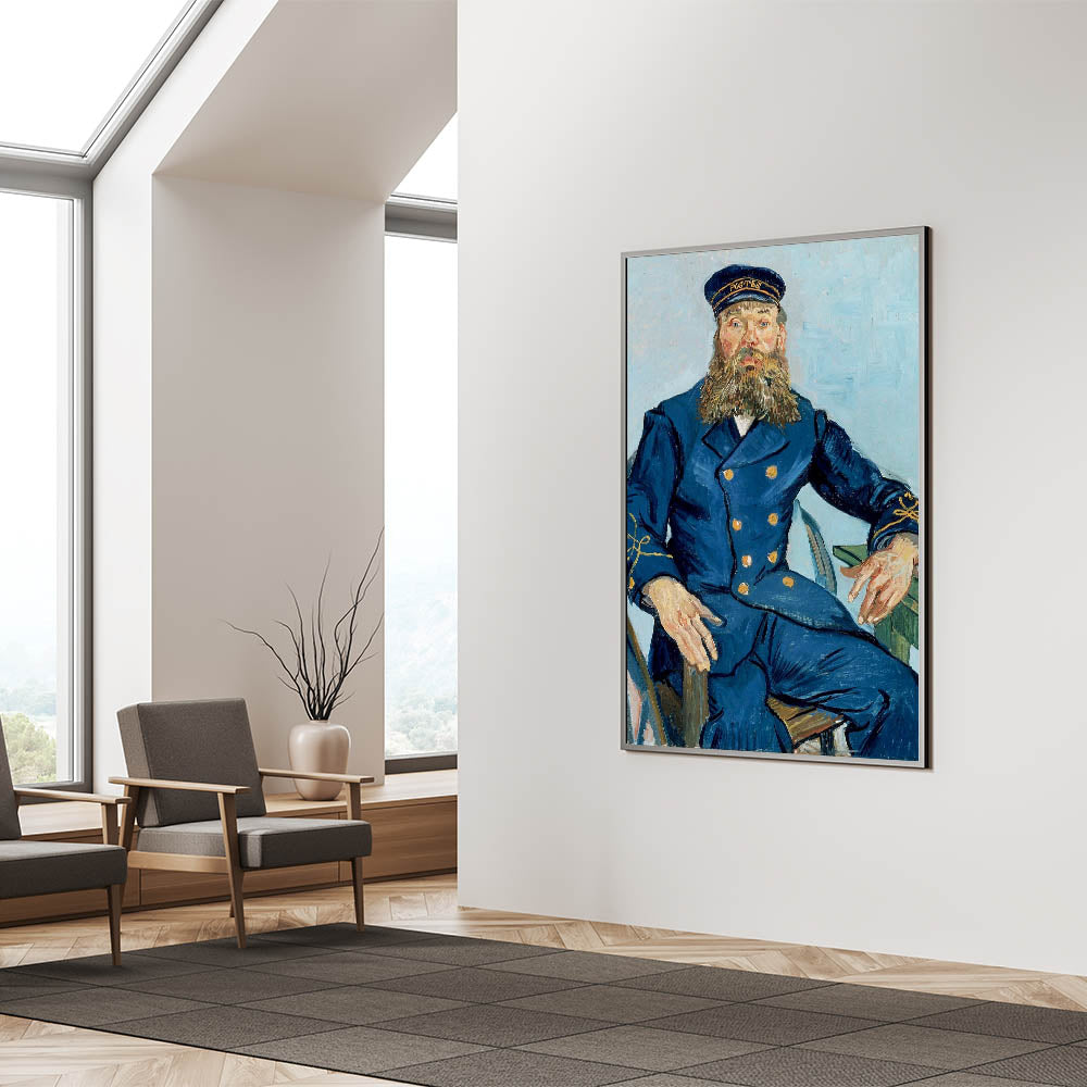 Celebrate the vibrancy and charm of Vincent van Gogh's "Portrait of the Postman Joseph Roulin." This striking masterpiece showcases the postman, a close friend of van Gogh, dressed in his formal uniform. With vivid blues, expressive brushstrokes, and a detailed depiction of Roulin’s warm demeanor, this painting exemplifies the unique brilliance of Impressionist art.