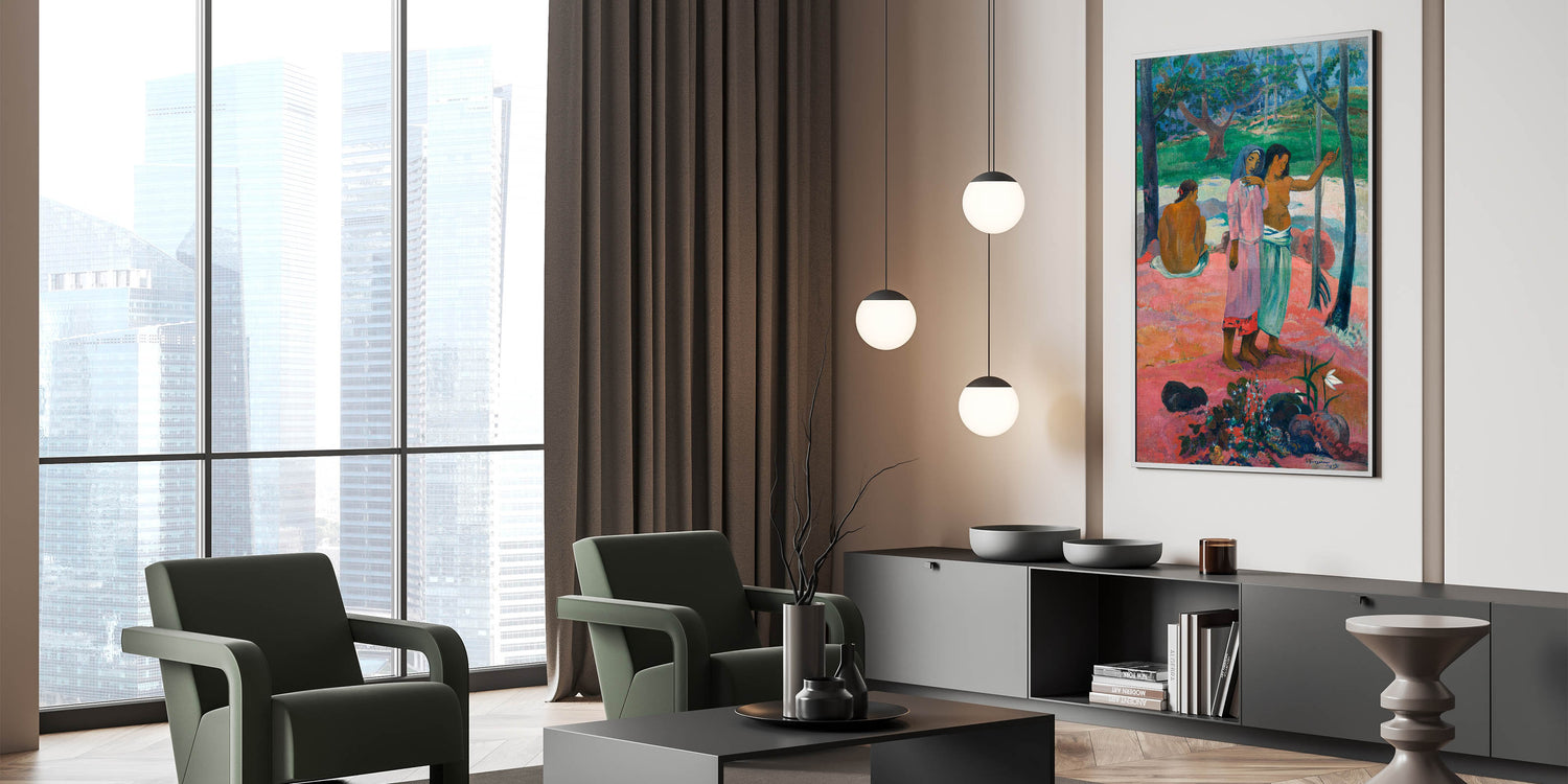 - High-quality reproduction of Paul Gauguin’s vibrant tropical painting