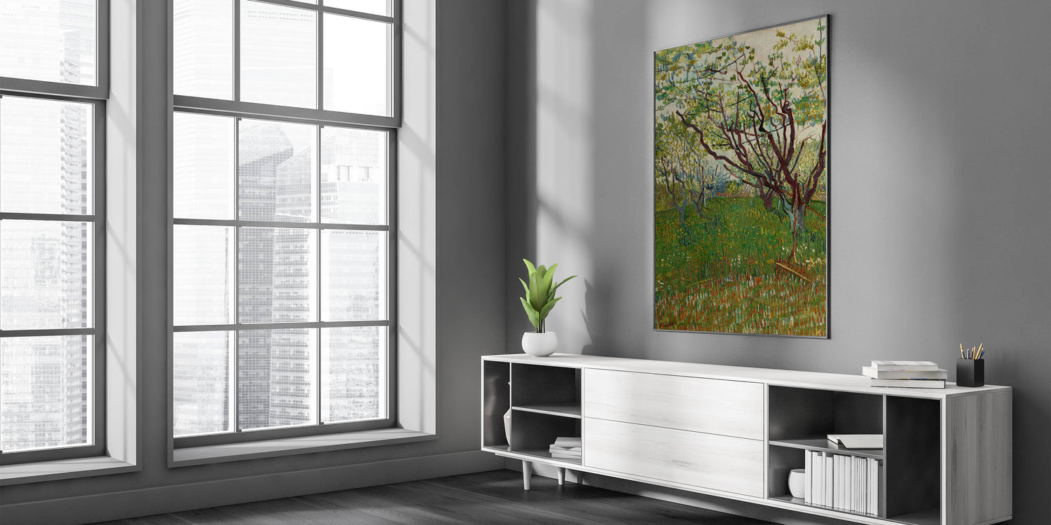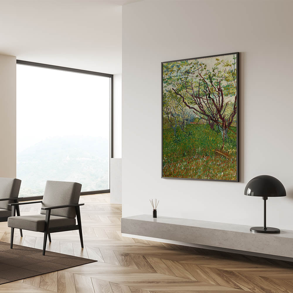 Capture the essence of spring with this breathtaking Impressionist wall art, inspired by the vibrant beauty of blooming orchards. This artwork, crafted in the style of famous Impressionist paintings, features intricate details of blossoming trees and lush greenery. The soft yet vivid palette embodies the Impressionist style, making it a timeless addition to any space.