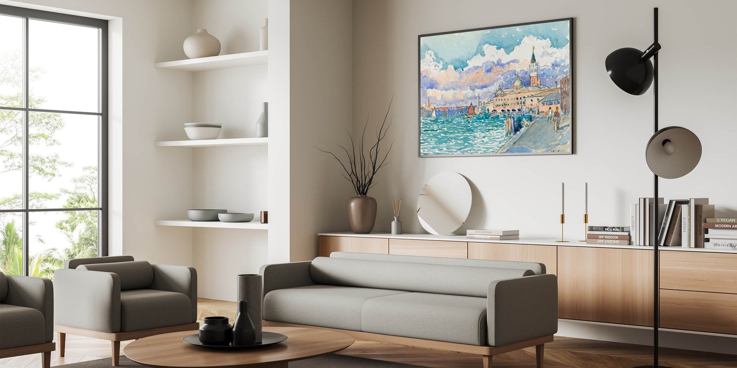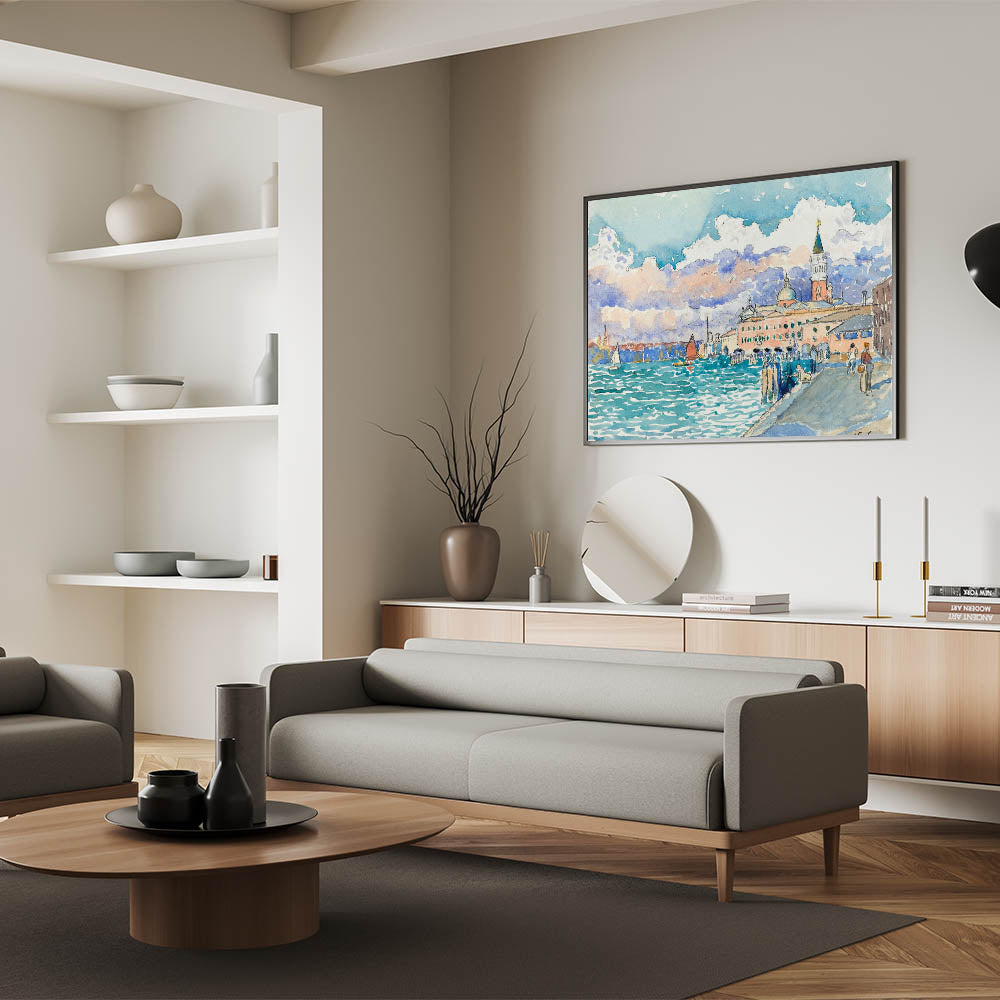 Capture the timeless charm of Venice with Henri Edmond Cross’s masterpiece, "Venice." This Impressionist cityscape brings the iconic canals and grand architecture of Venice to life, depicted with delicate brushwork and vibrant hues. The interplay of soft pinks, blues, and turquoise captures the serene beauty of the water and sky, making this artwork a stunning centerpiece for any space.