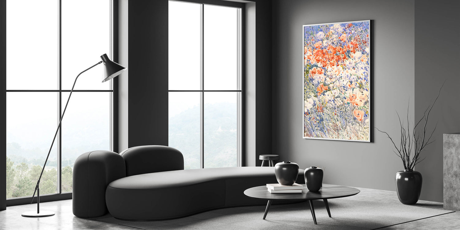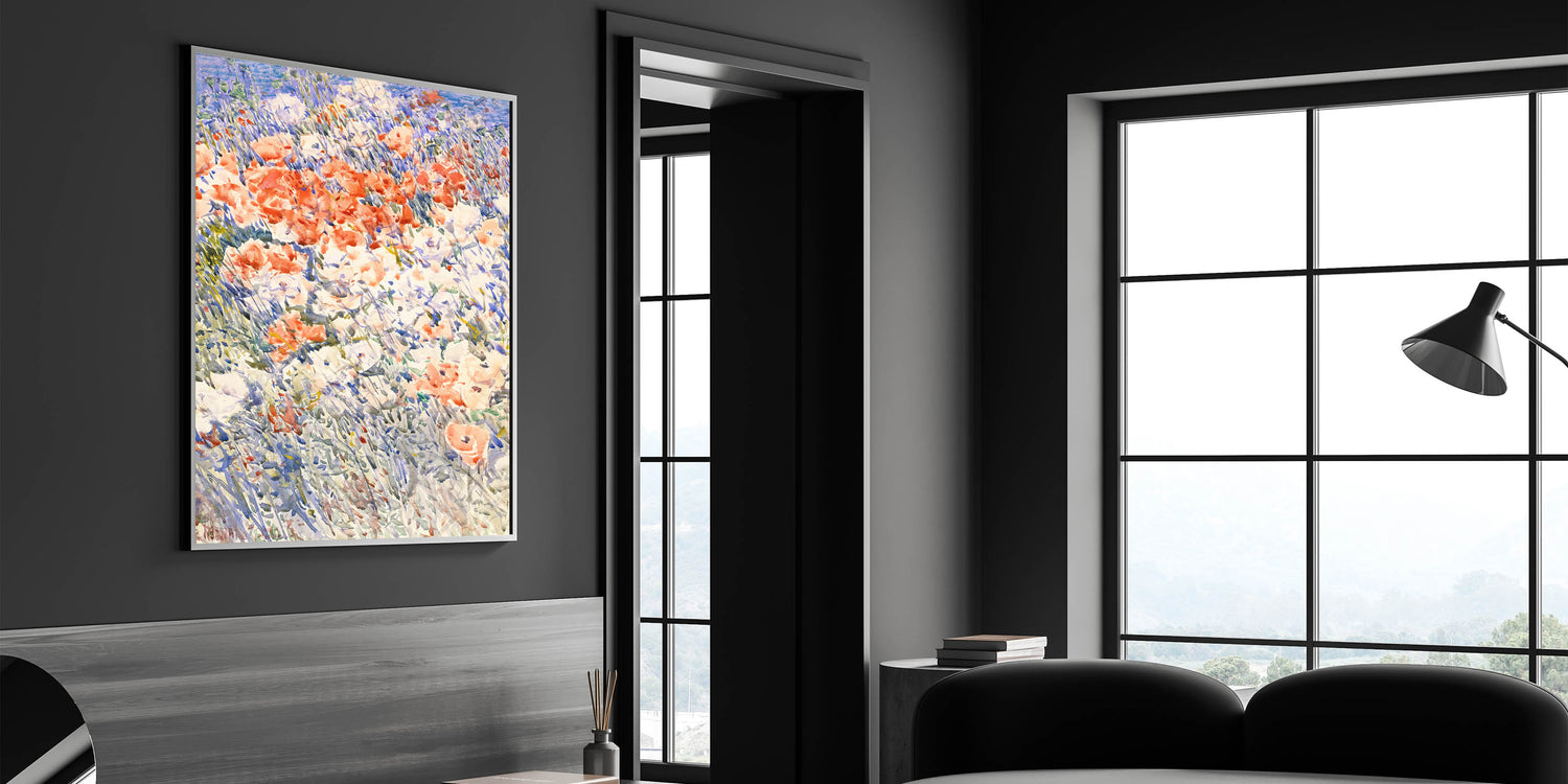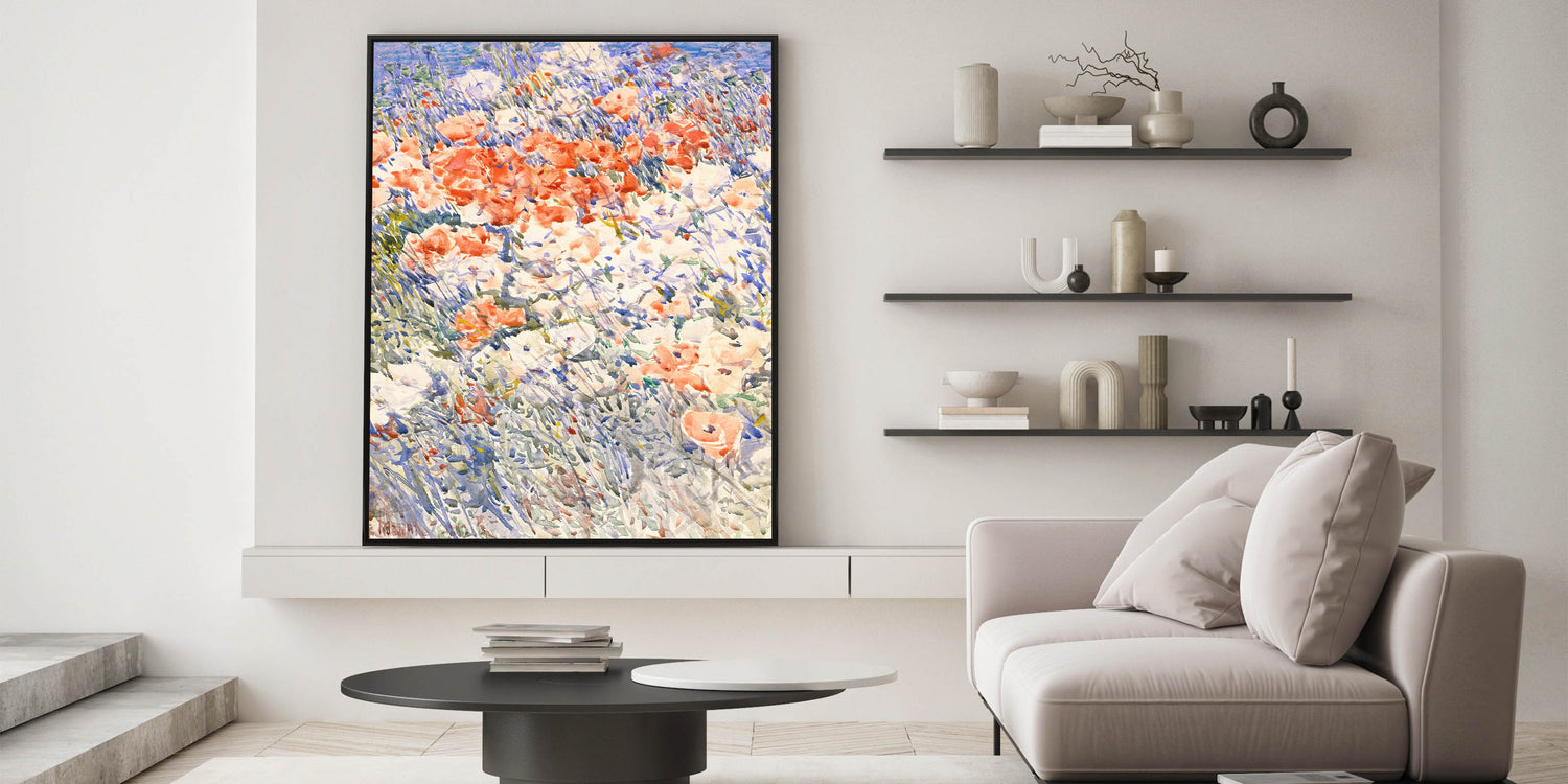 Brighten your home with "The Island Garden" by Childe Hassam, a masterful Impressionist artwork capturing a vibrant floral meadow. The painting's lively composition, featuring blooming flowers in shades of coral, white, and lavender, evokes the essence of a breezy, sunlit garden. Hassam's delicate brushstrokes and harmonious color palette bring this floral paradise to life.