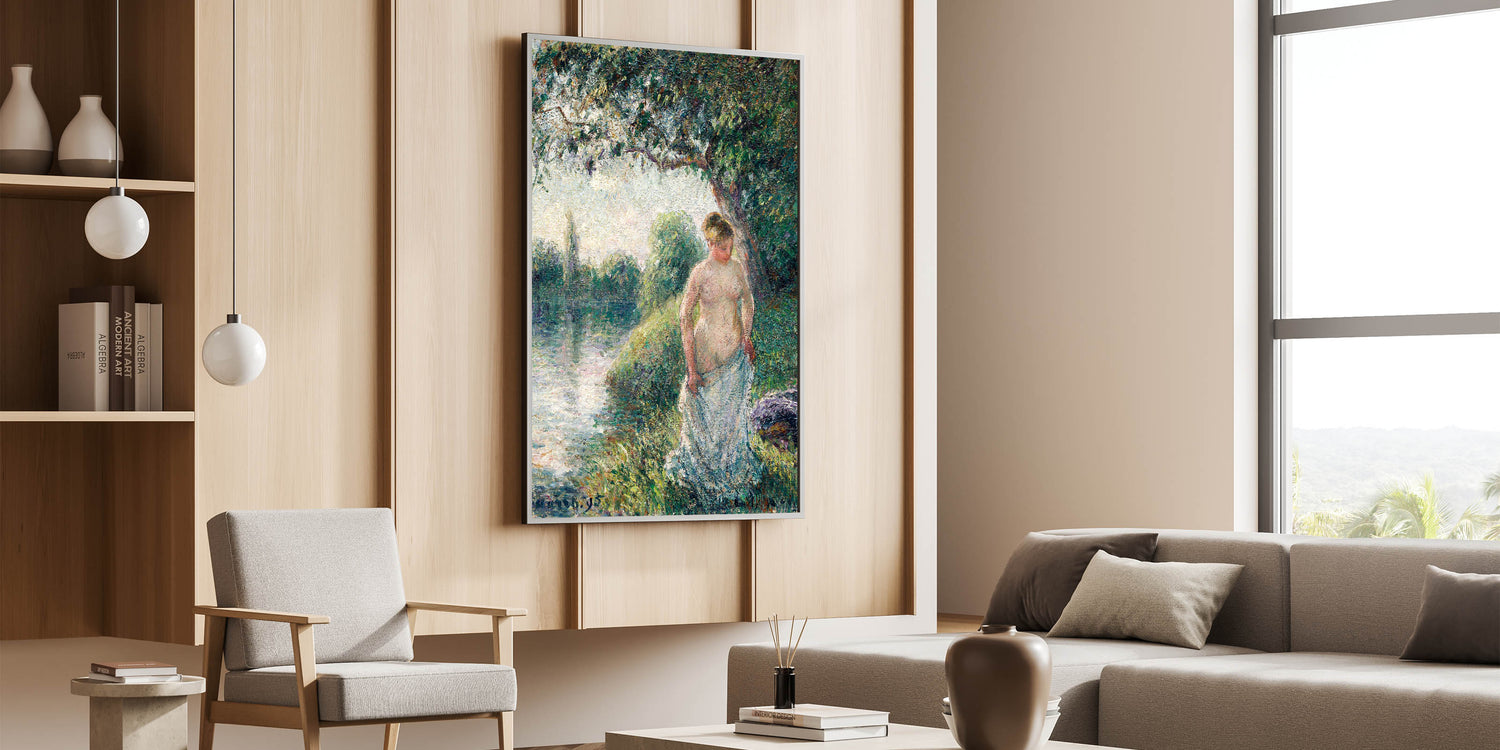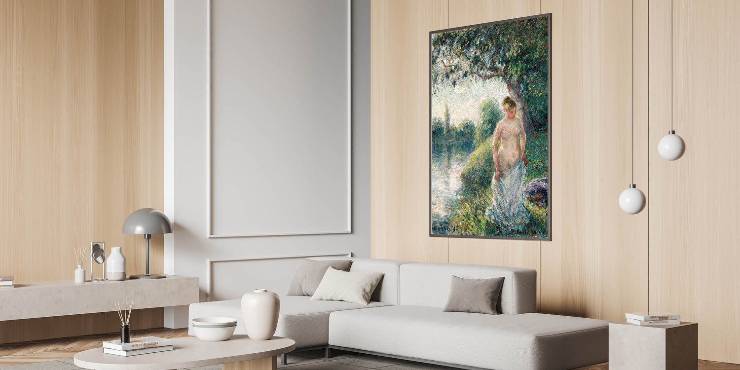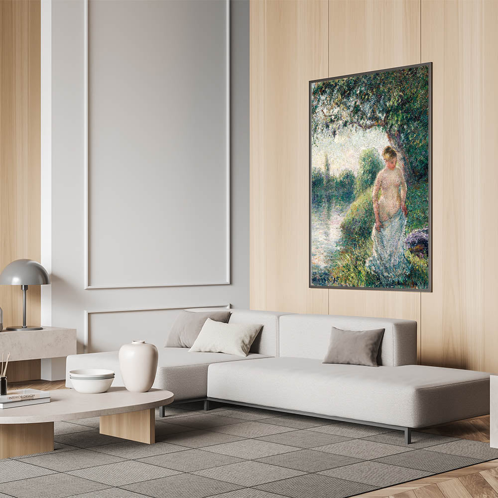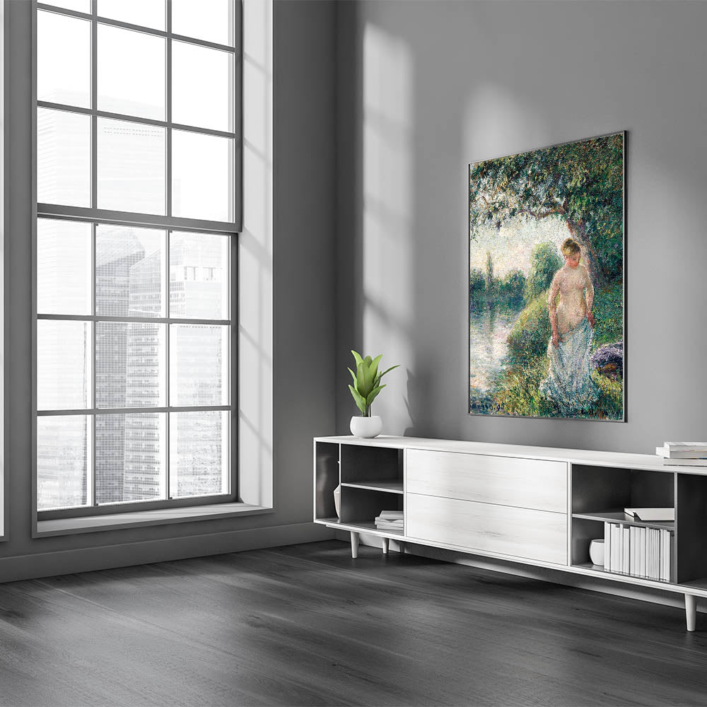 Add a touch of natural beauty and historical artistry to your home with this Impressionist wall art. "The Bather" embodies the timeless elegance of Impressionism, creating a serene focal point for any interior.