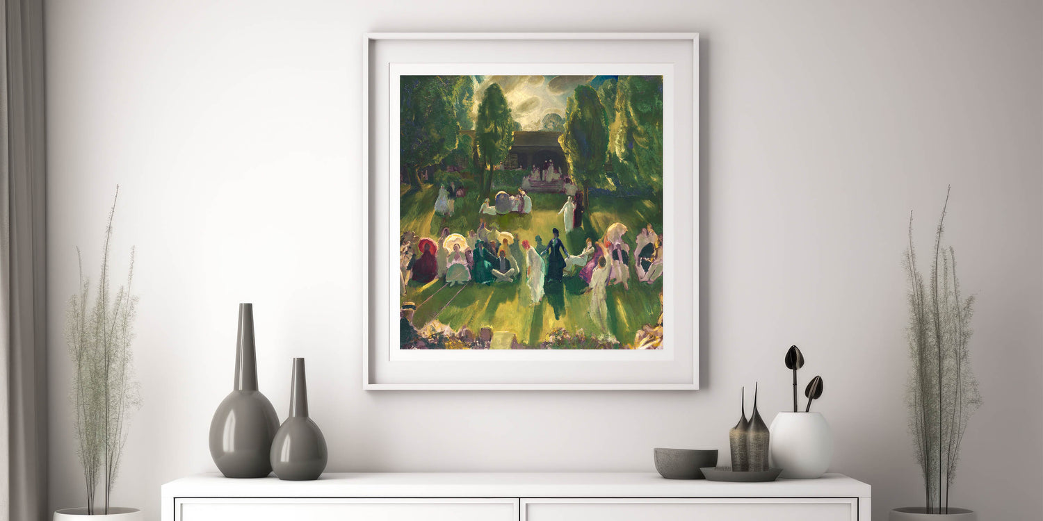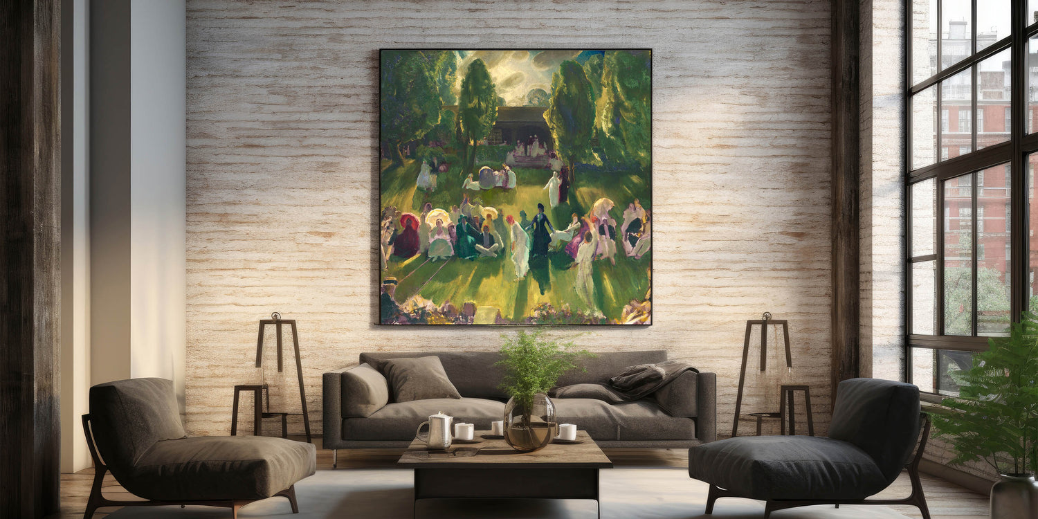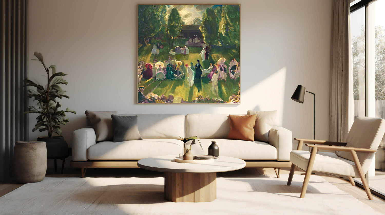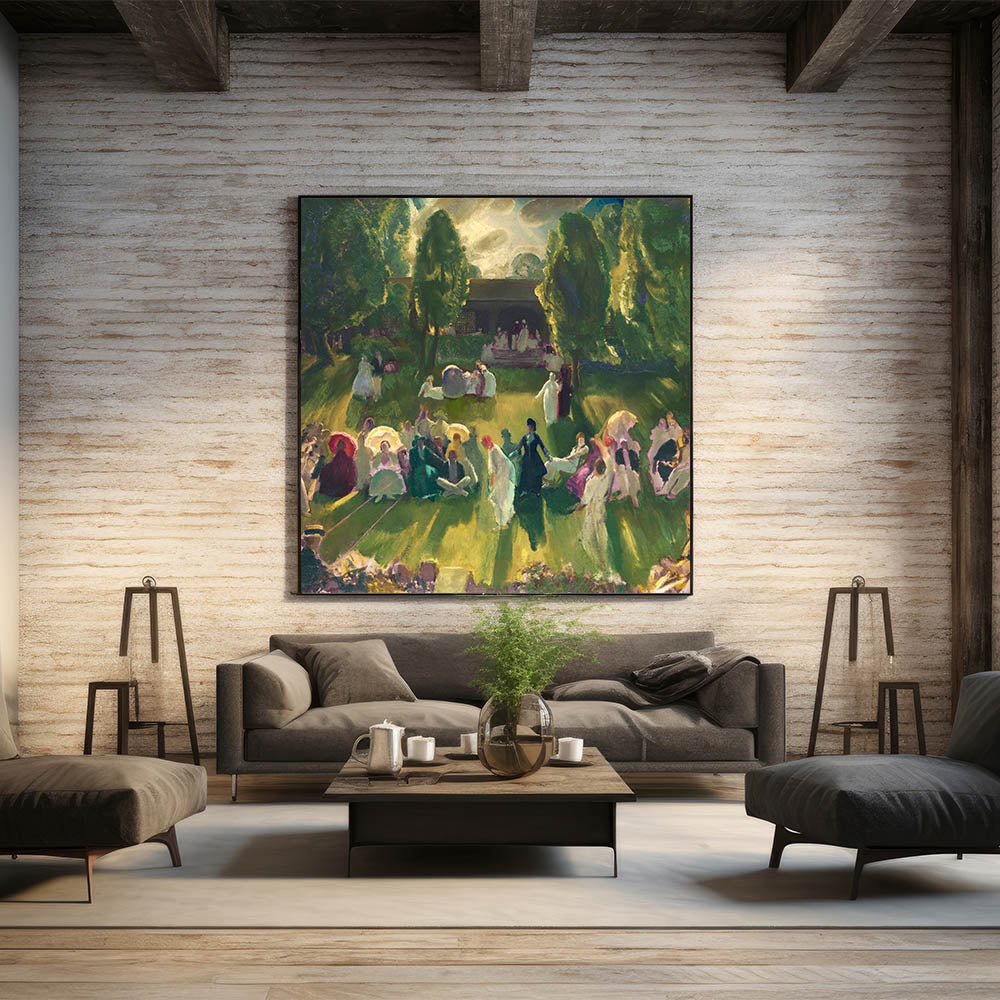 Bring the timeless beauty of Impressionism into your home with this stunning wall art inspired by the renowned Impressionist style. Featuring an idyllic outdoor scene filled with light and movement, this piece captures a lively tennis gathering under a canopy of lush green trees. The vibrant brushstrokes and dynamic lighting evoke the essence of modern Impressionism art, making it a perfect addition to any art lover's collection.
