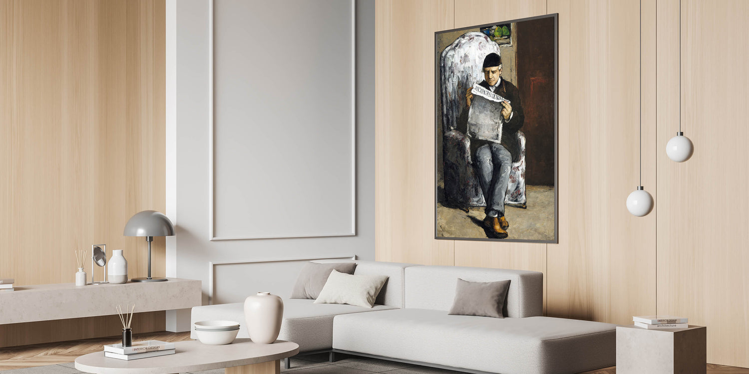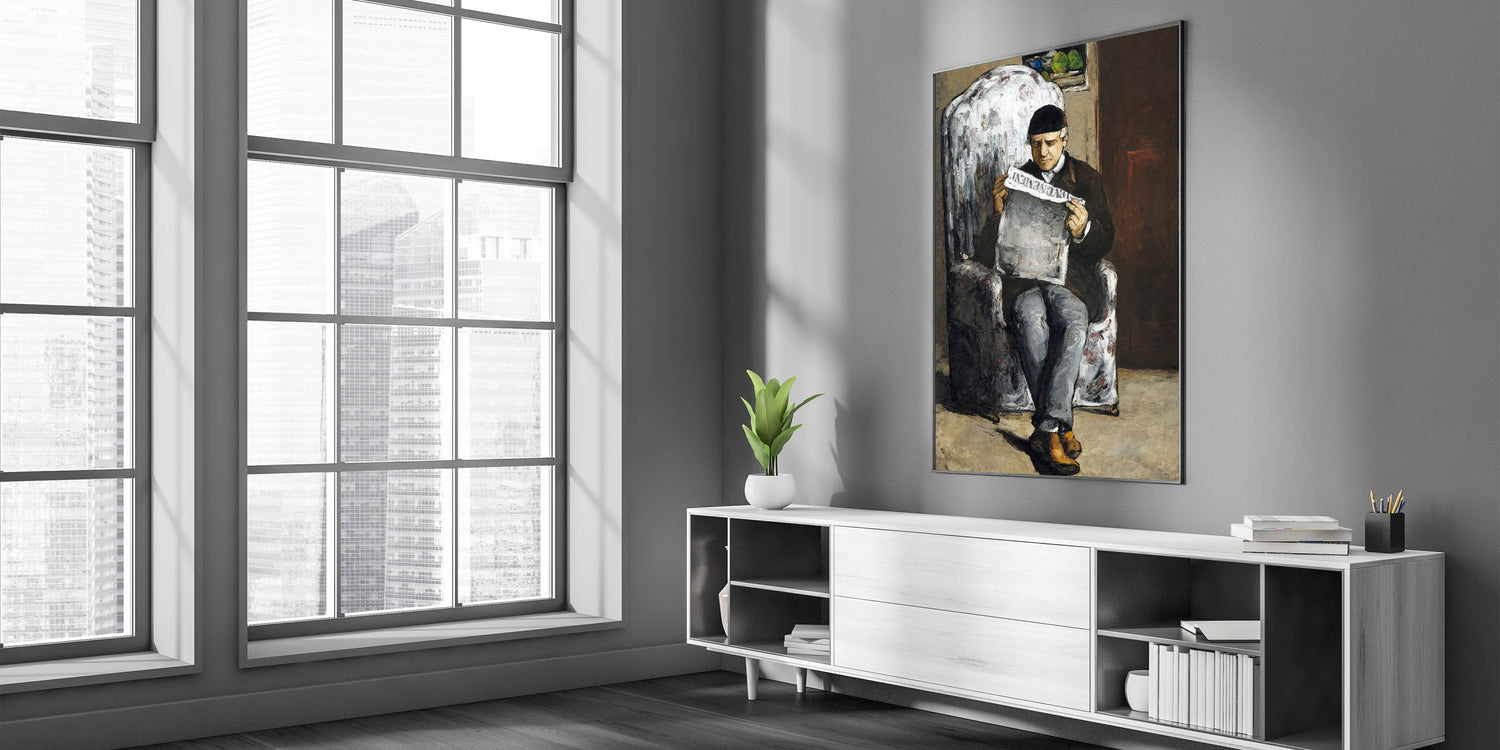 Add a touch of history and artistic depth to your space with Paul Cézanne's "The Artist's Father, Reading L'Événement." This powerful portrait showcases Cézanne's unique Impressionist style, combining expressive brushstrokes with a muted color palette. The painting captures an intimate moment as Cézanne's father reads a newspaper, bringing a sense of stillness and introspection to the scene. Perfect for art enthusiasts, this piece is an iconic representation of Cézanne's early works and his exploration of human connection.