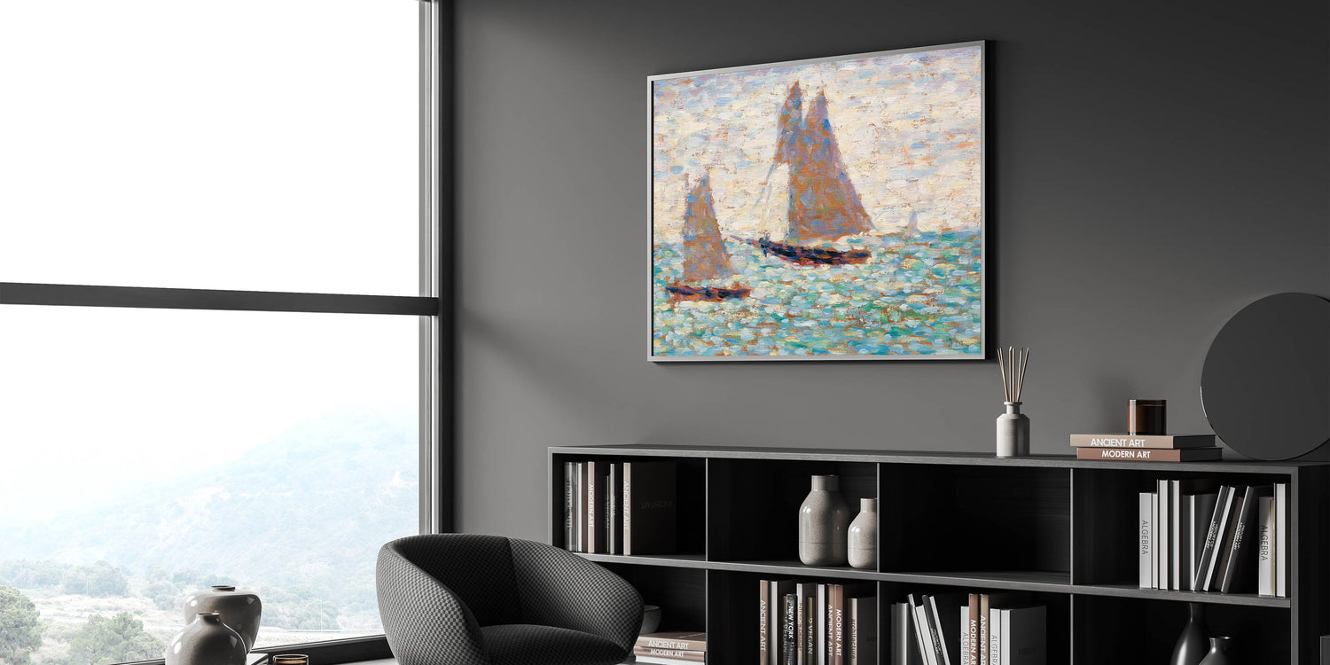 Impressionist Seascape Art – Two Sailboats at Grandcamp by Seurat
