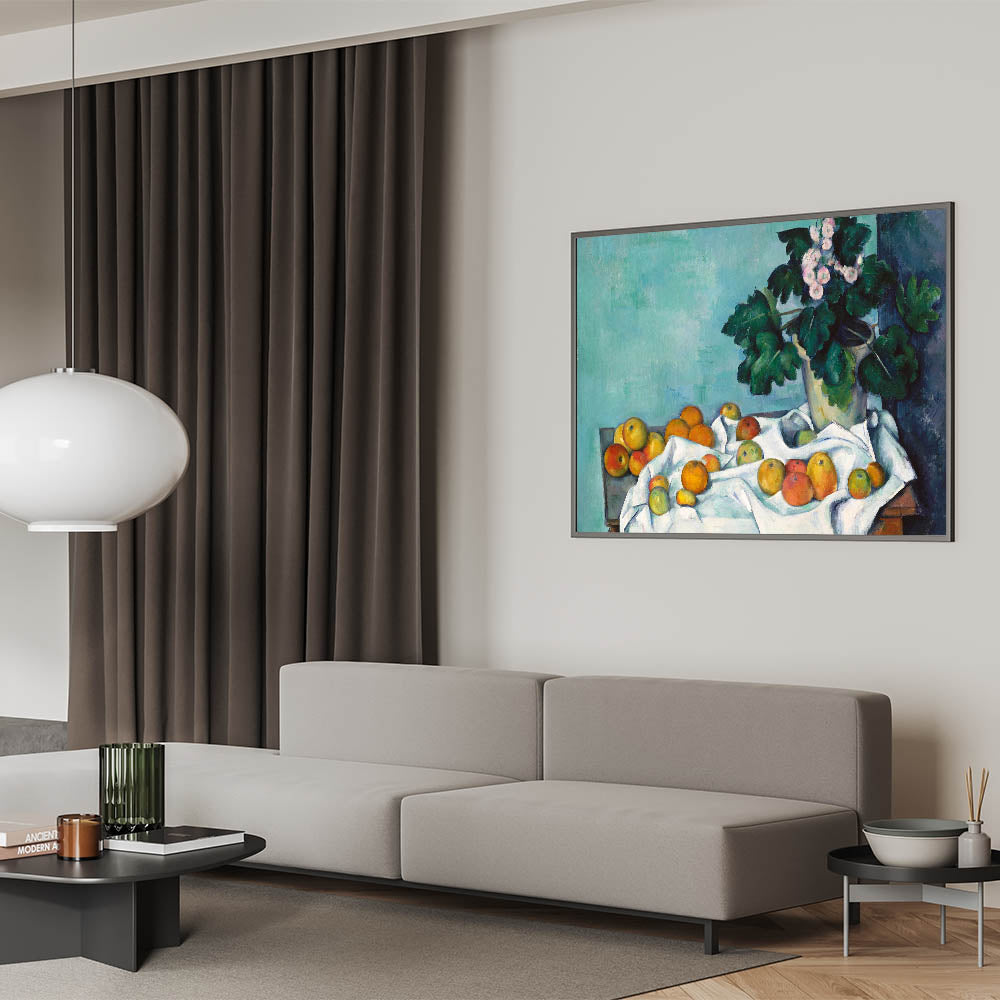 - Design: A beautiful still life blending vivid florals with ripe fruits, showcasing the charm of Impressionism.