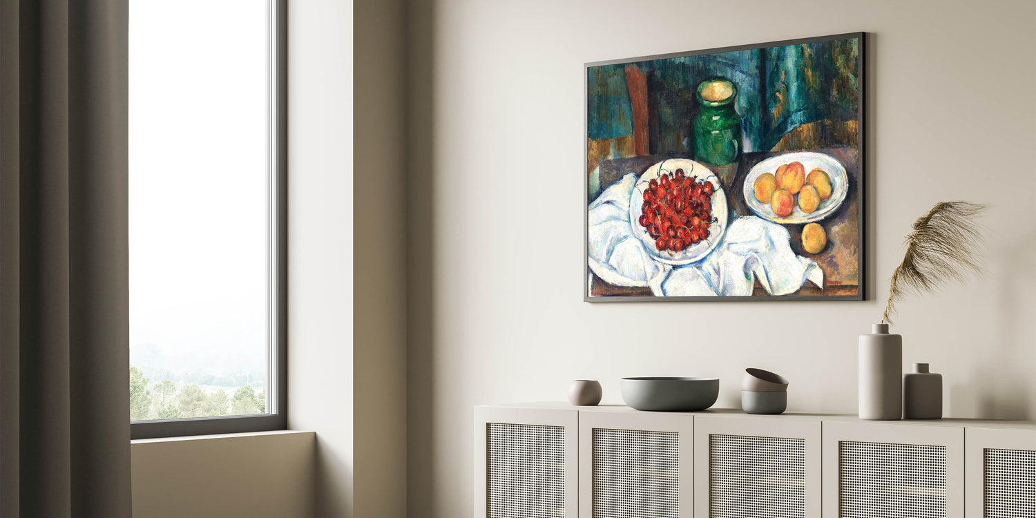 - Design: A vibrant, detailed still life painting that celebrates the natural beauty of fruits.