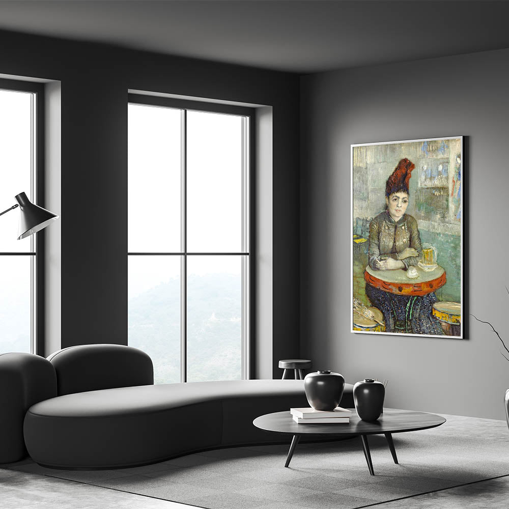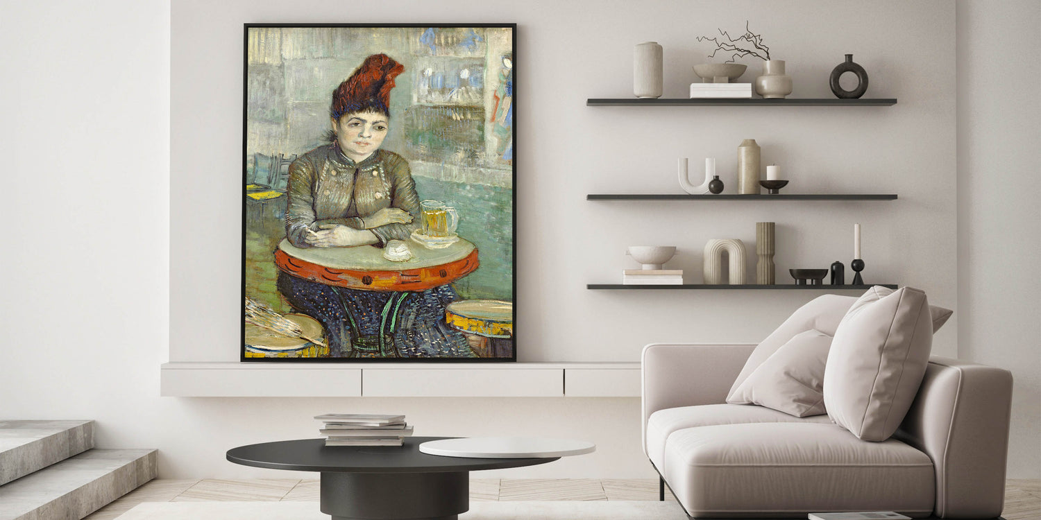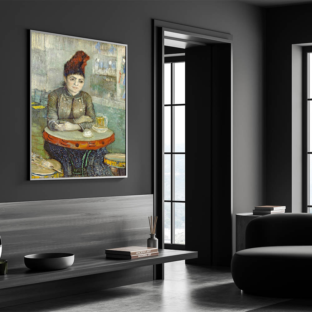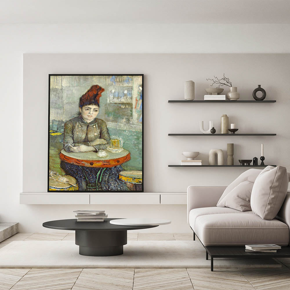 Step into the bohemian world of Paris with "Agostina Segatori Sitting in the Café du Tambourin" by Vincent van Gogh. This striking portrait captures the essence of Parisian café culture, blending Van Gogh’s expressive brushwork with a warm, earthy palette. The intricate details, from Agostina's poised expression to the vibrant surroundings, make this piece a unique addition to your art collection. Perfect for lovers of Impressionist decor and captivating portraits.