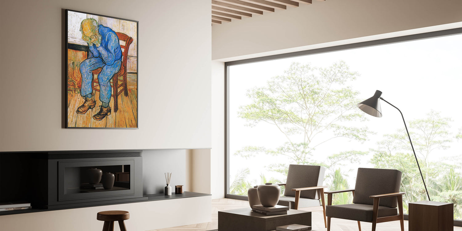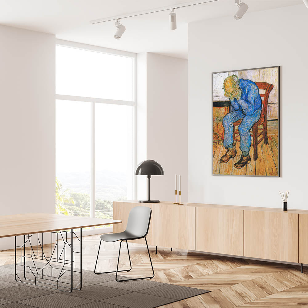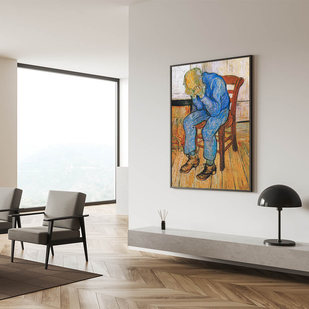 Experience the raw emotion of "At Eternity’s Gate" (1890) by Vincent van Gogh. This poignant masterpiece captures the essence of human despair and resilience with Van Gogh’s signature expressive brushstrokes and vibrant hues. The contrast of deep blues and warm earth tones creates an impactful narrative, making this artwork a powerful centerpiece for any room. Ideal for those who appreciate emotionally evocative and timeless Impressionist art.
