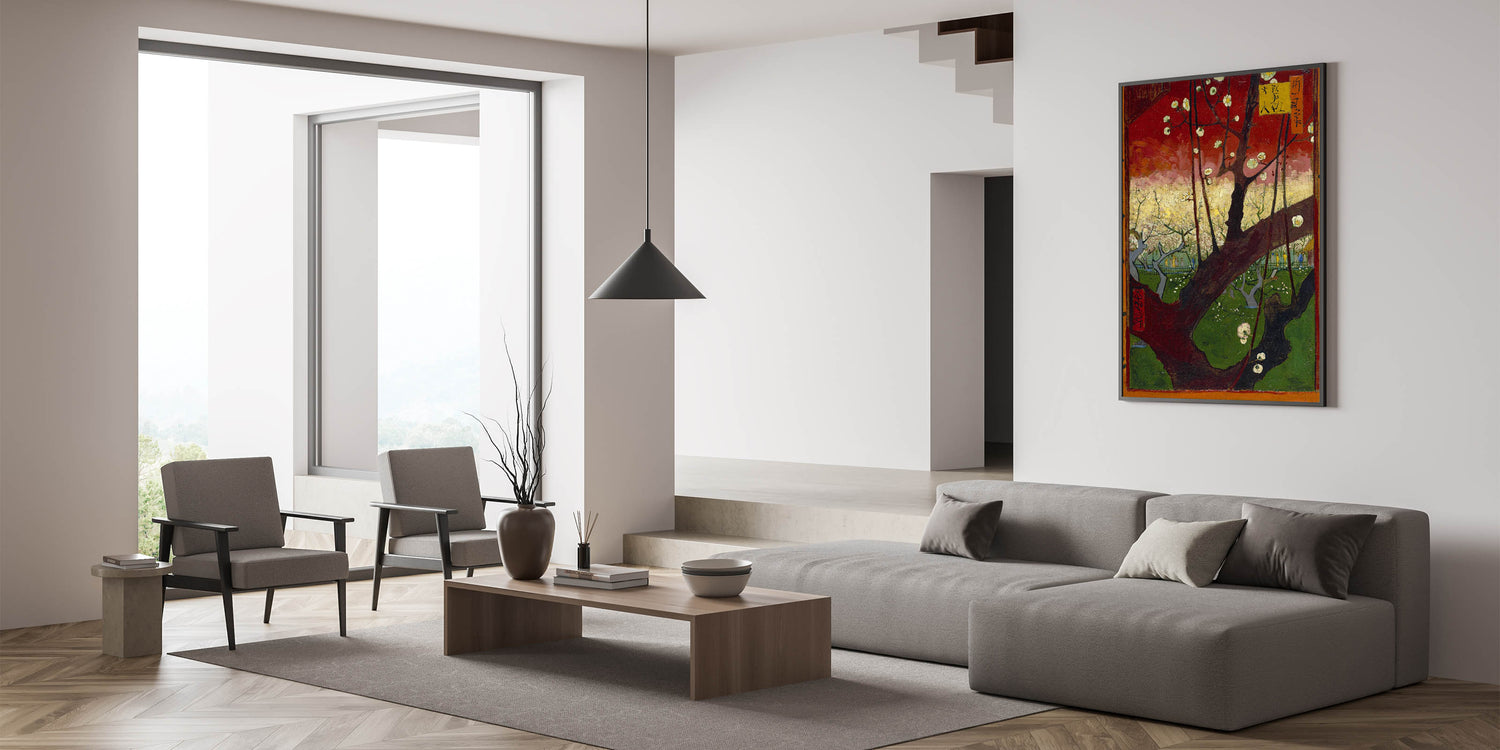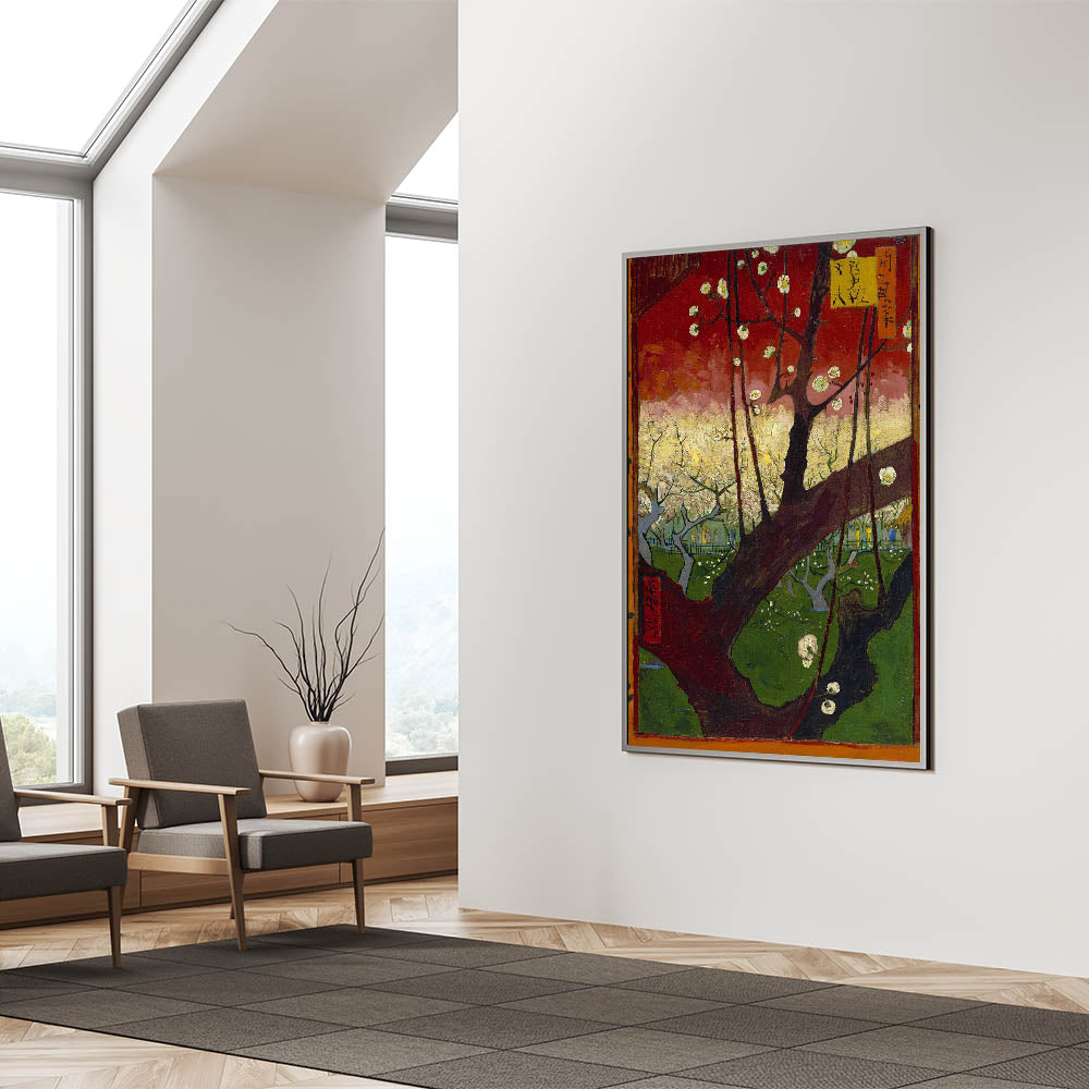 - High-quality reproduction of Van Gogh’s "Blooming Plum Orchard"