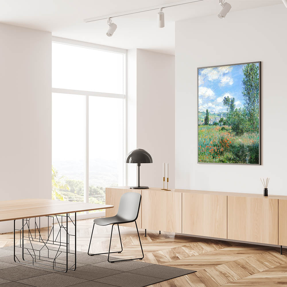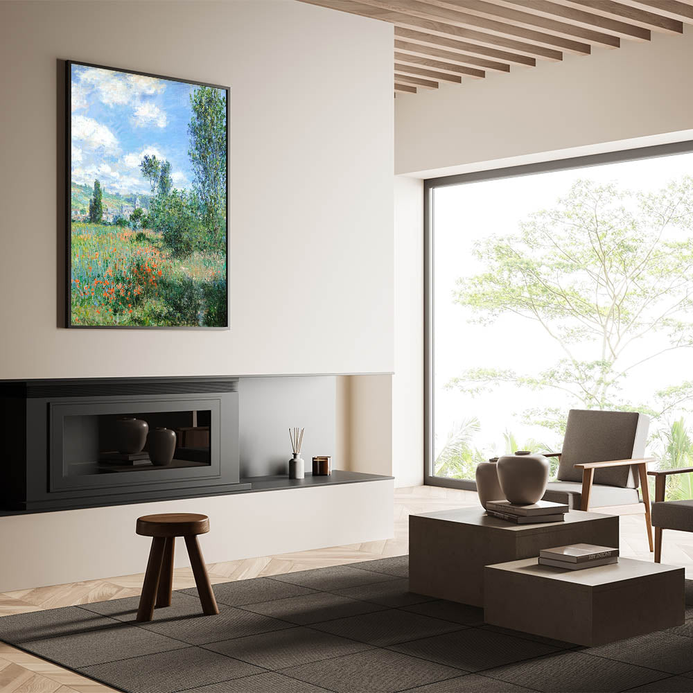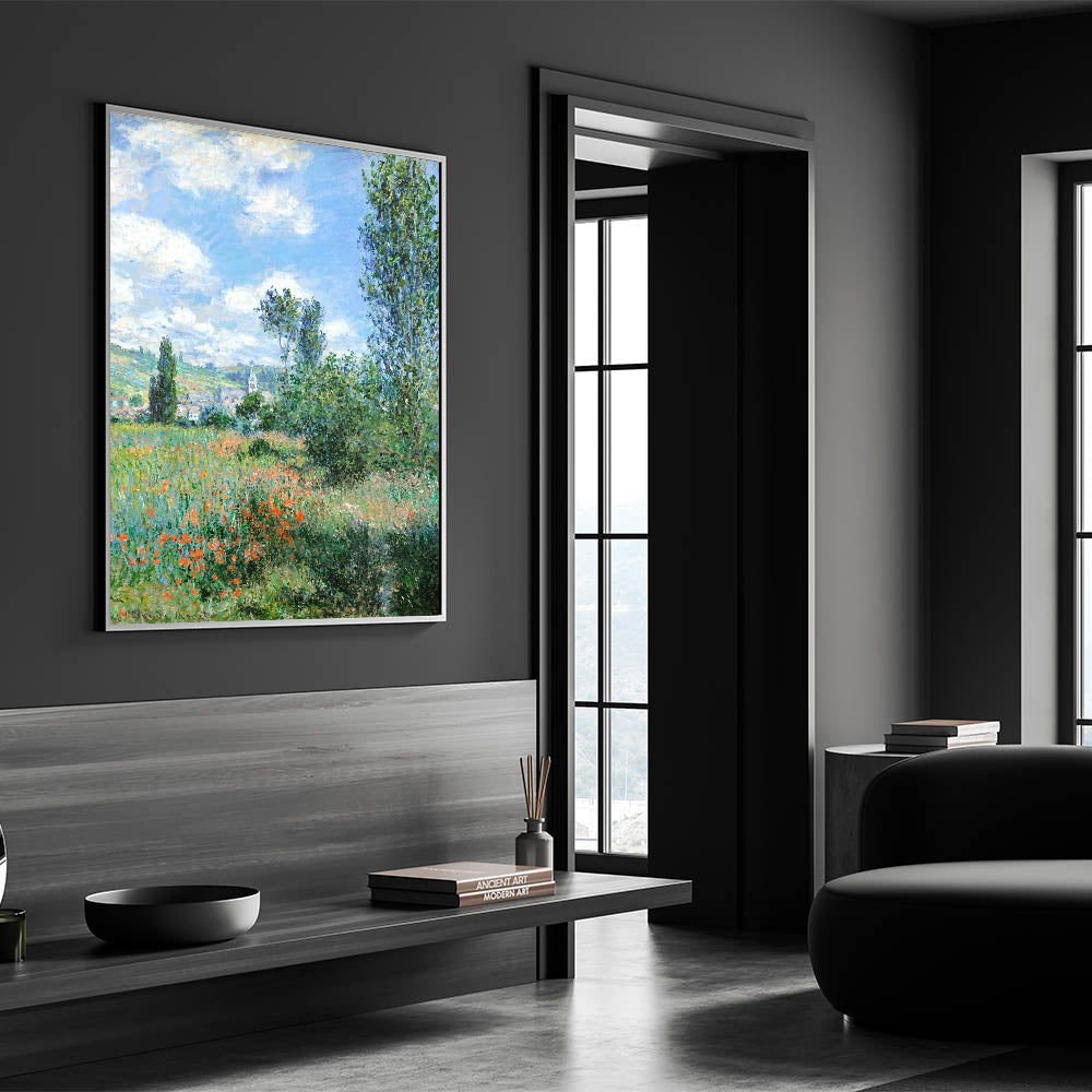 Transform your space with the serene beauty of "View of Vétheuil" (1880) by Claude Monet. This breathtaking Impressionist landscape showcases Monet’s mastery of light and color, capturing the charm of the French countryside. The vibrant greens and soft blues create a tranquil and inviting atmosphere, making this artwork a perfect addition to any living room, bedroom, or office.