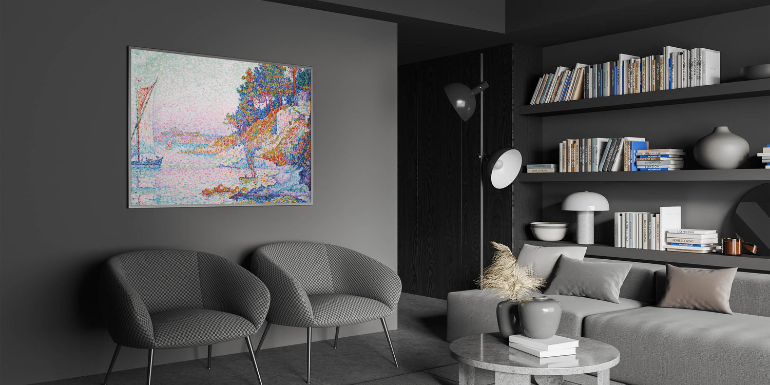 Bring the charm of the Mediterranean to your home with this timeless artwork that celebrates the beauty of nature and the brilliance of Pointillism.