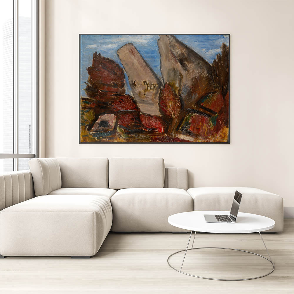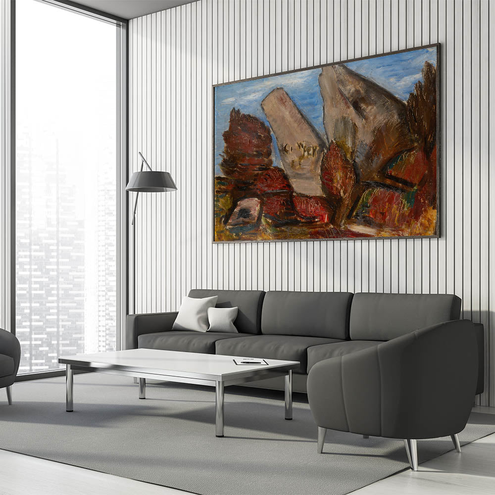 - Modern wall art with bold abstract shapes and rich color contrasts