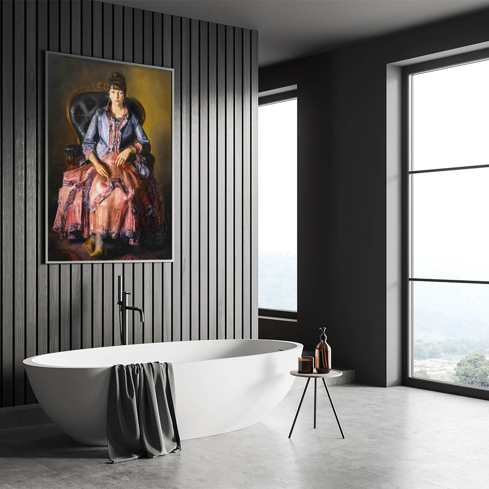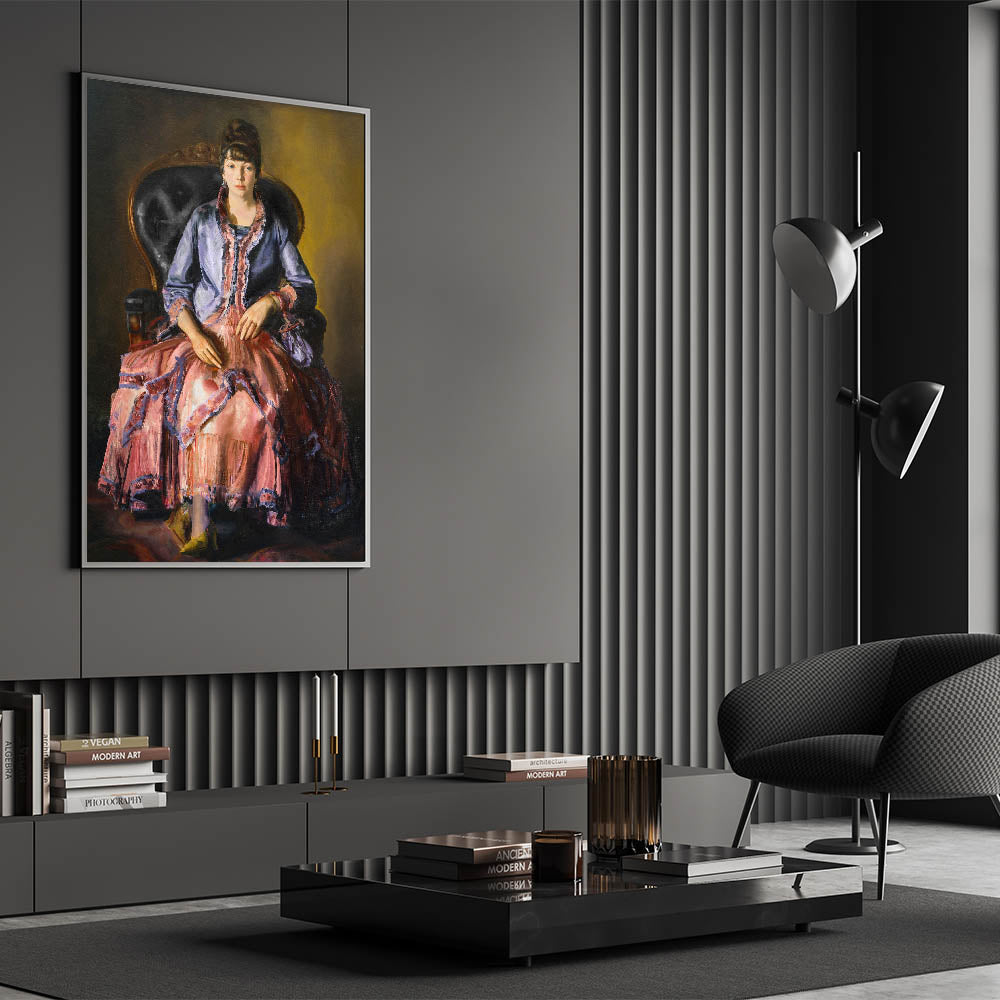Modern Figurative Art - Elegant Woman in Purple and Pink Dress