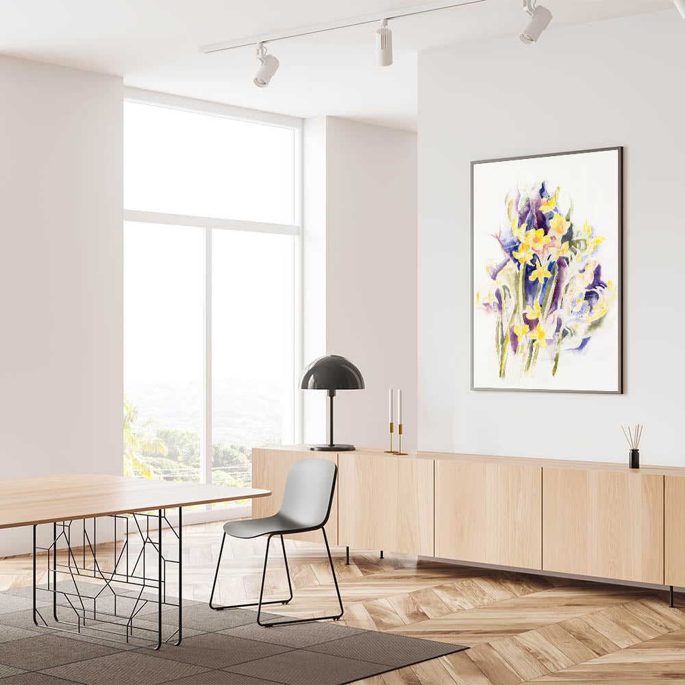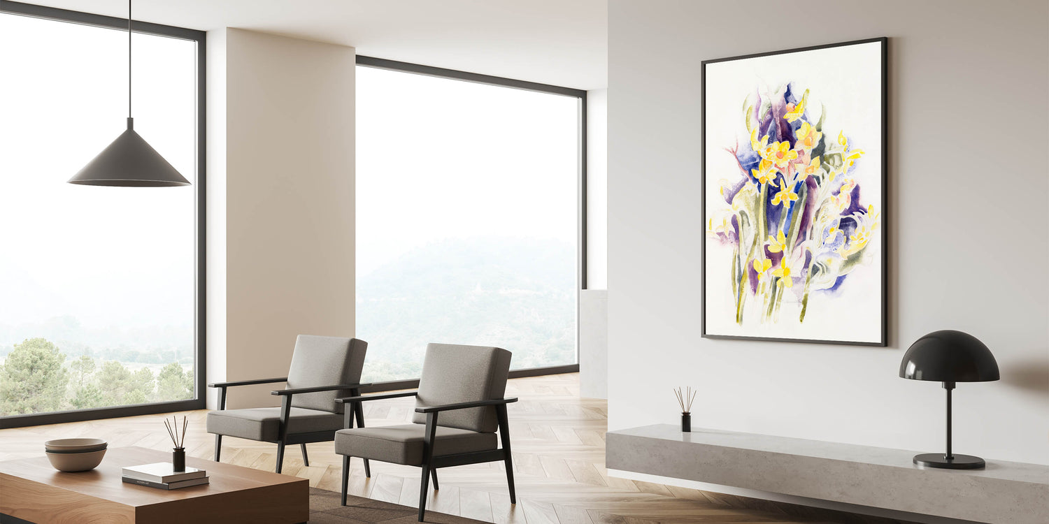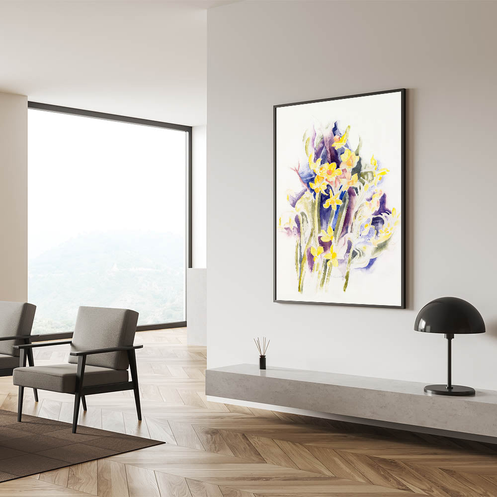 Modern Floral Wall Art - Watercolor Daffodils in Yellow & Purple
